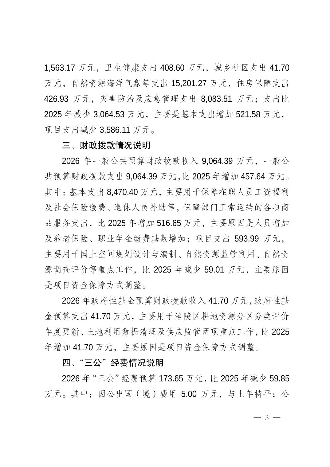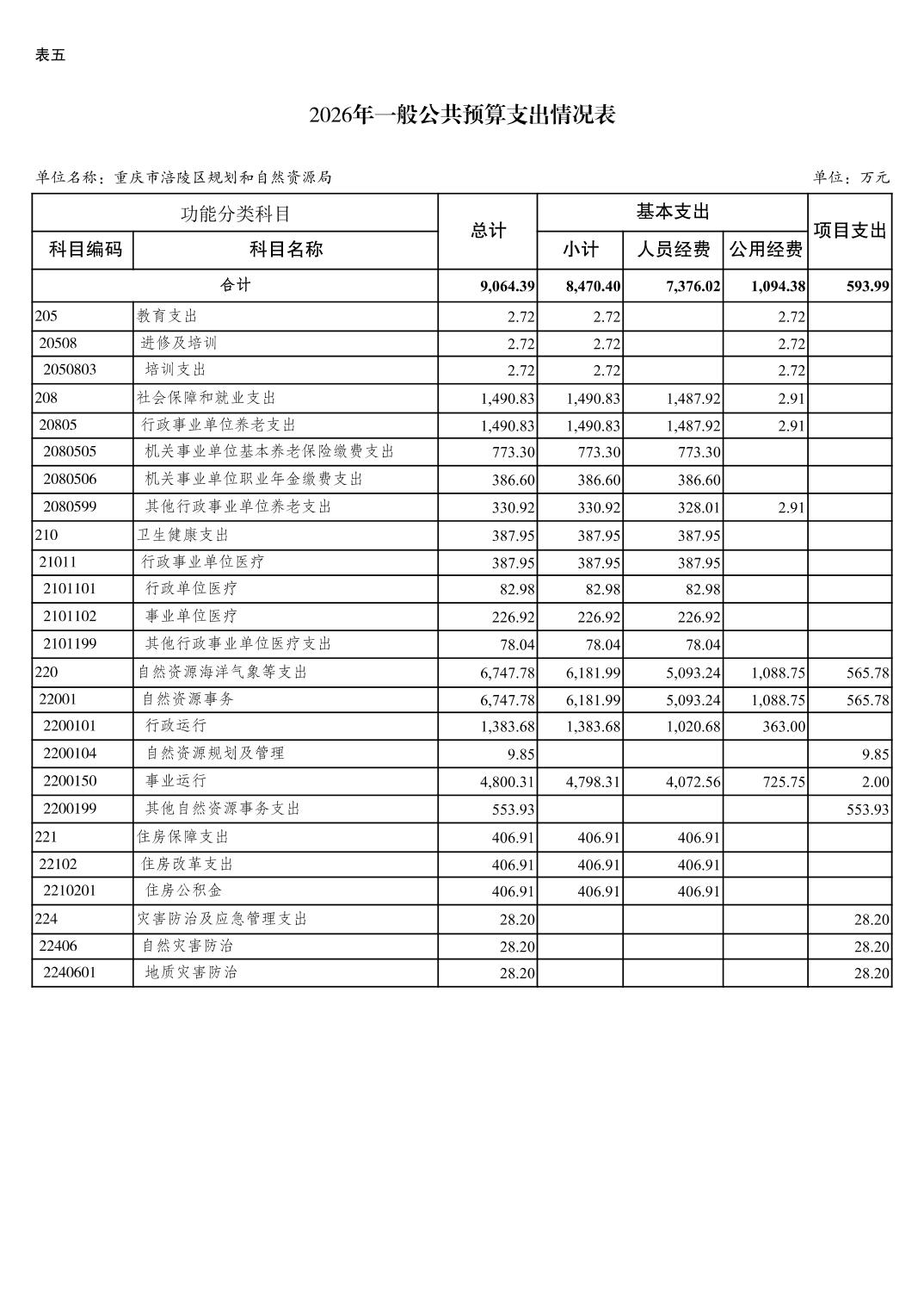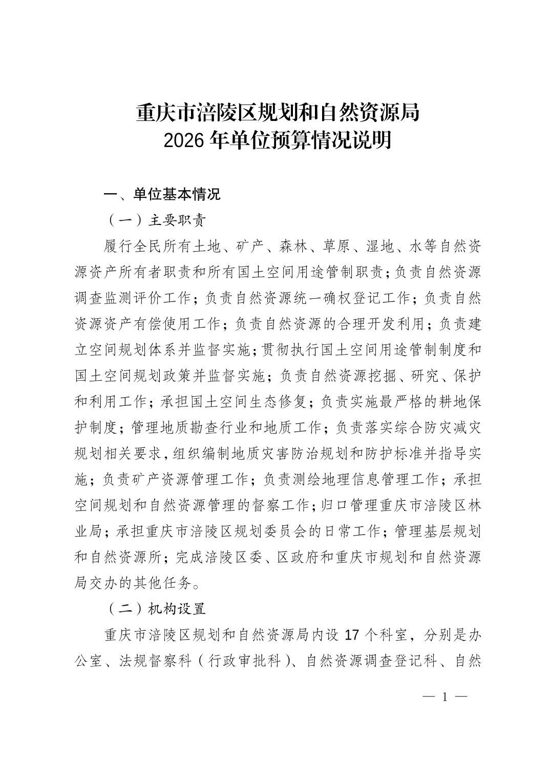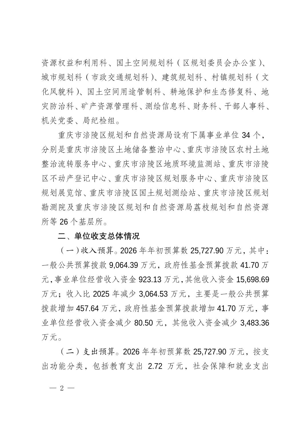 重庆市涪陵区规划和自然资源局2026年预算情况说明