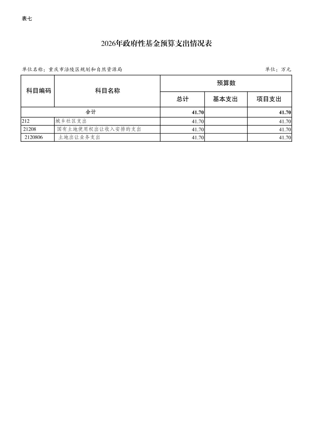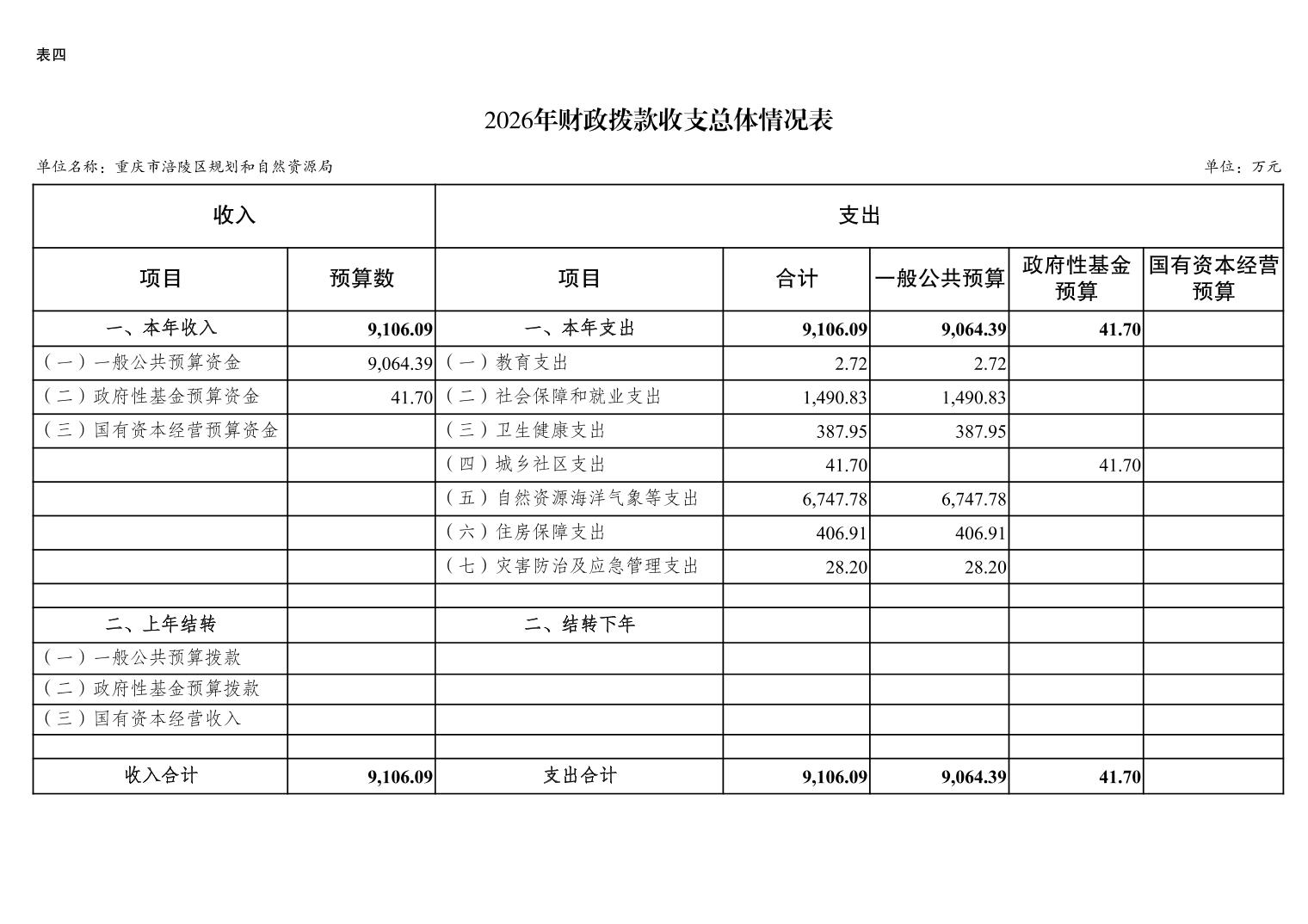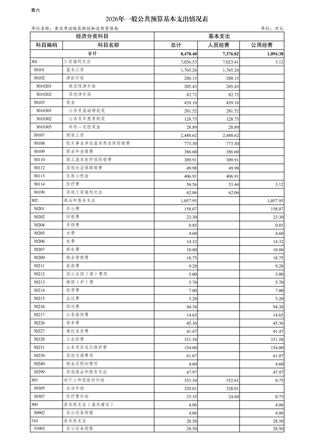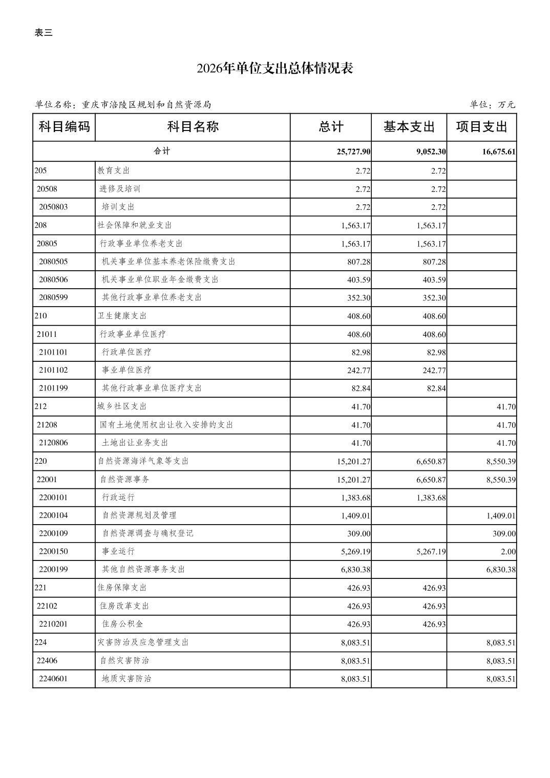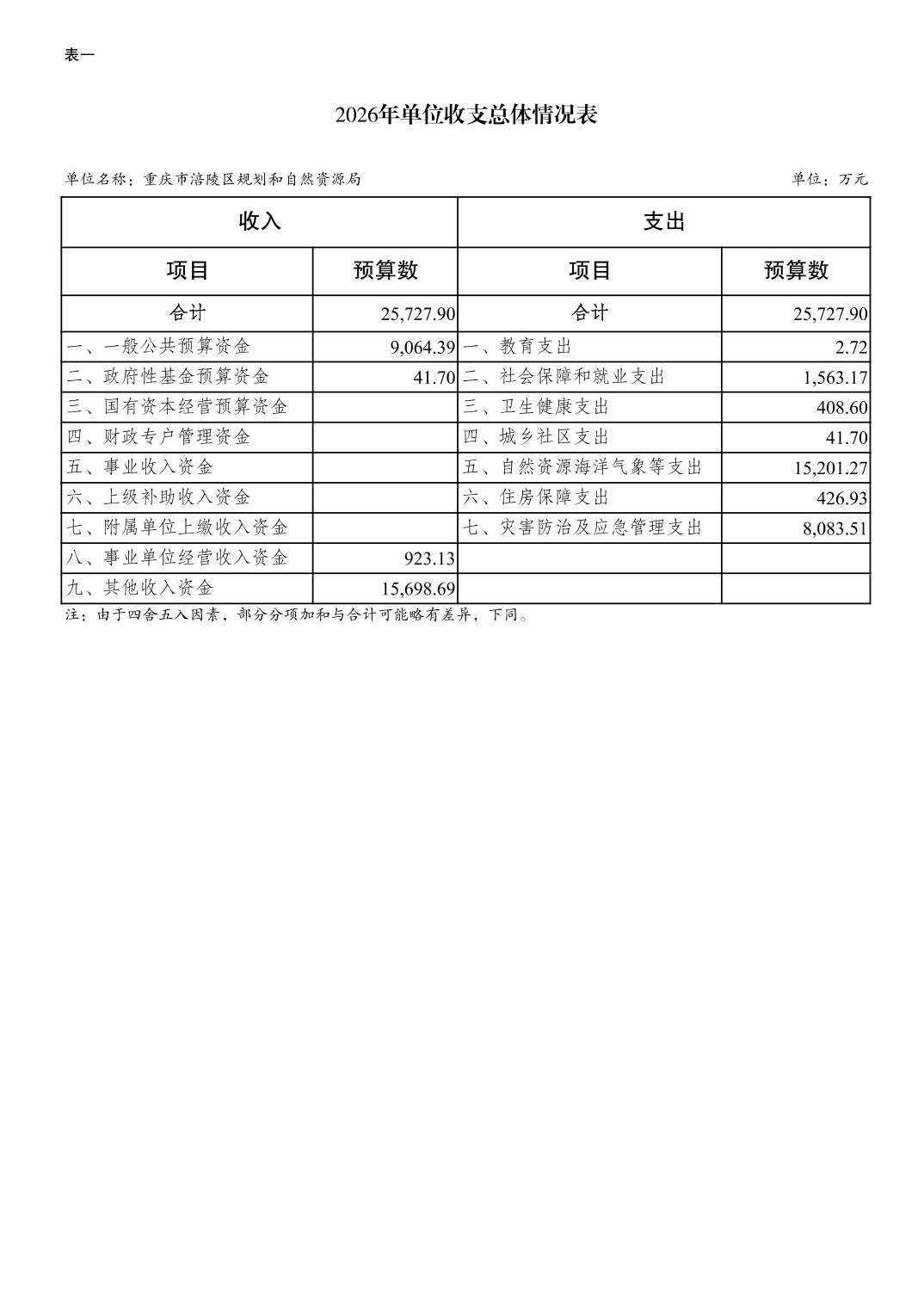 重庆市涪陵区规划和自然资源局2026年预算情况说明
