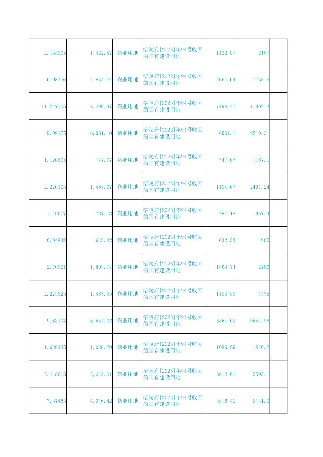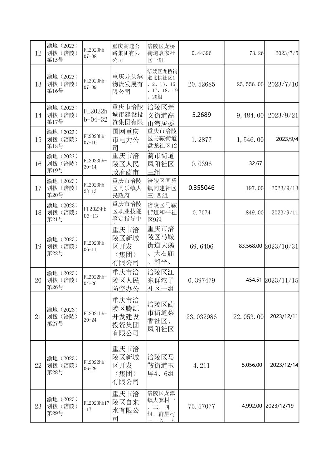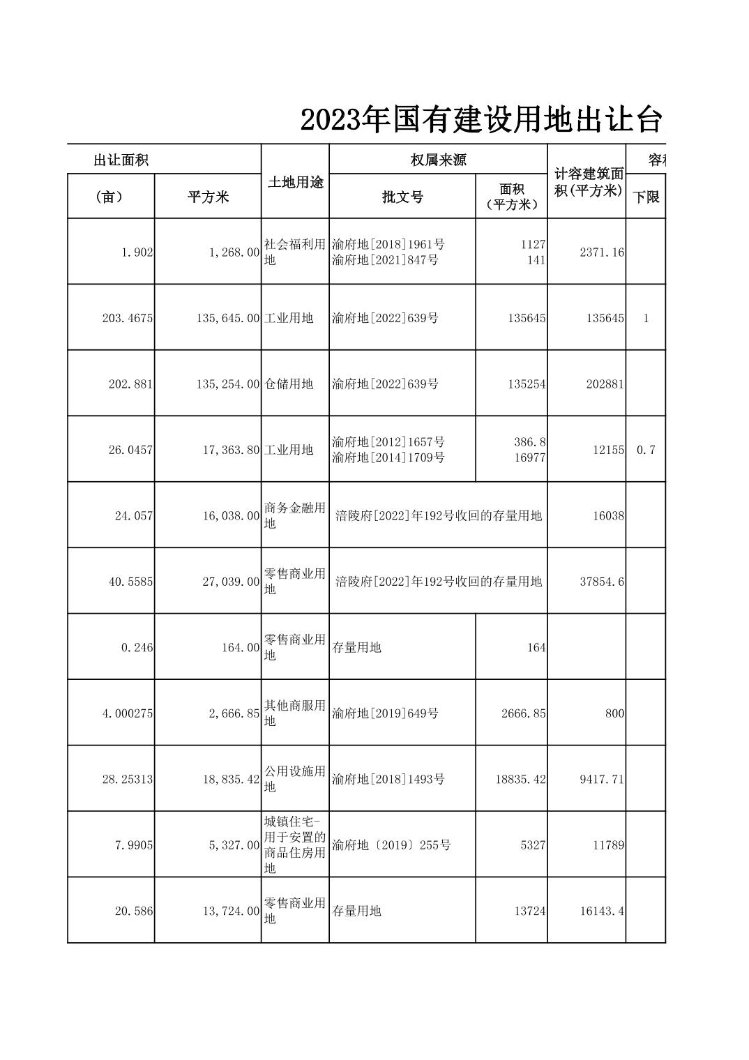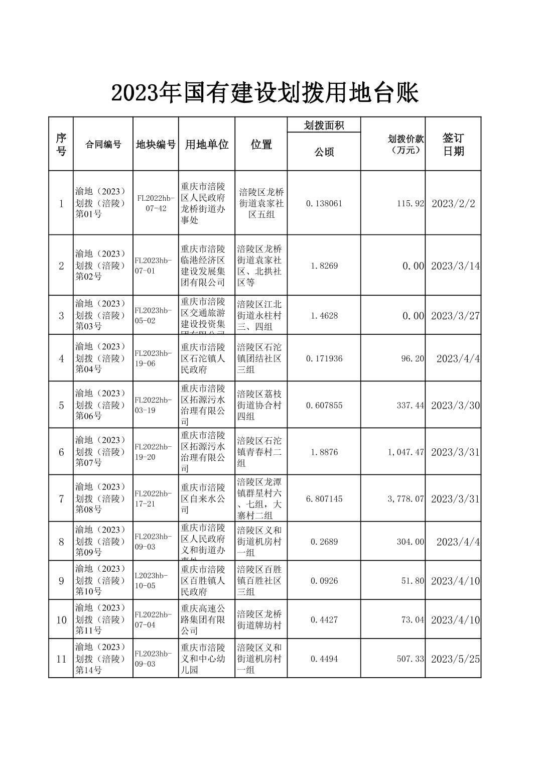 2023年国有建设用地划拨台账