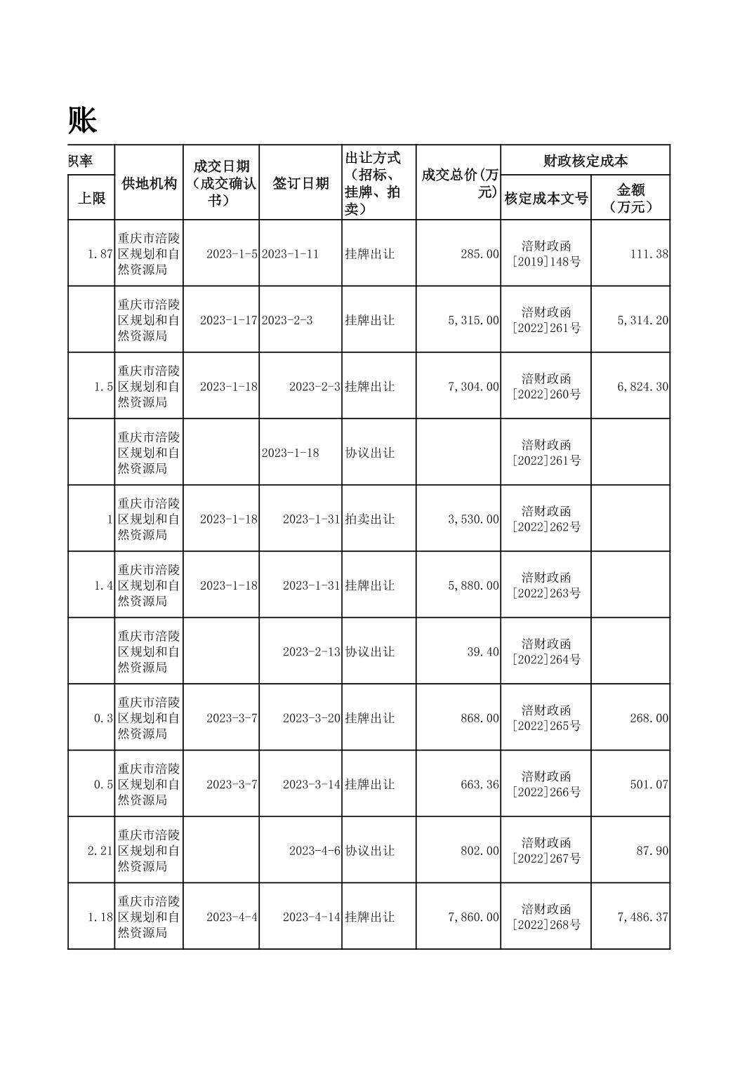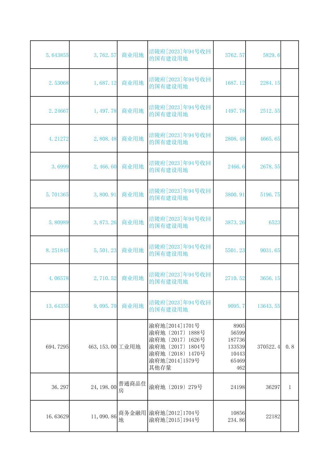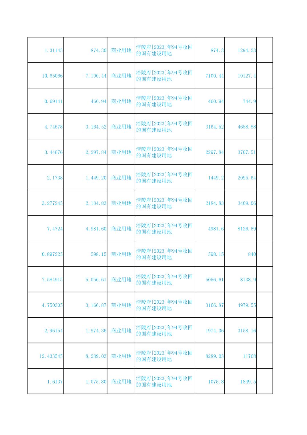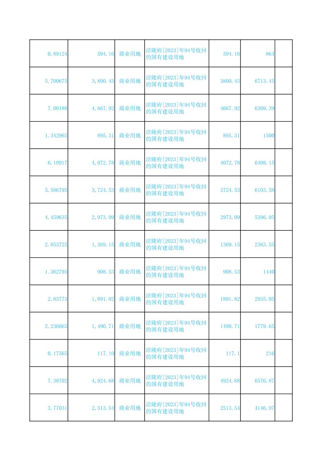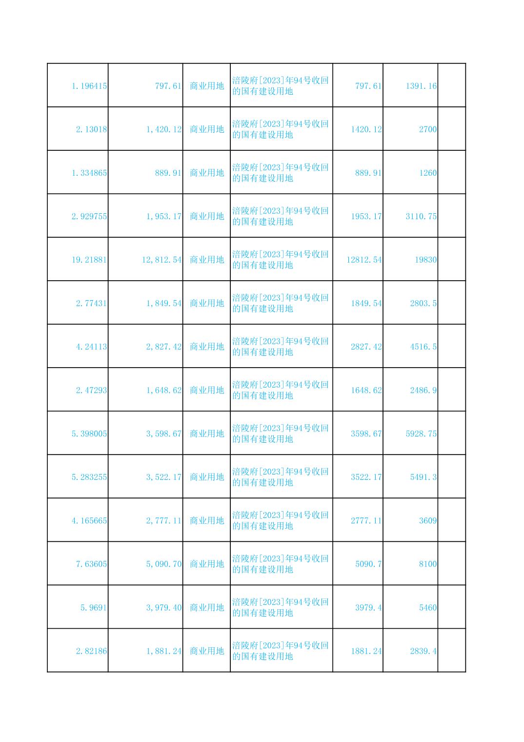 2023年国有建设用地划拨台账