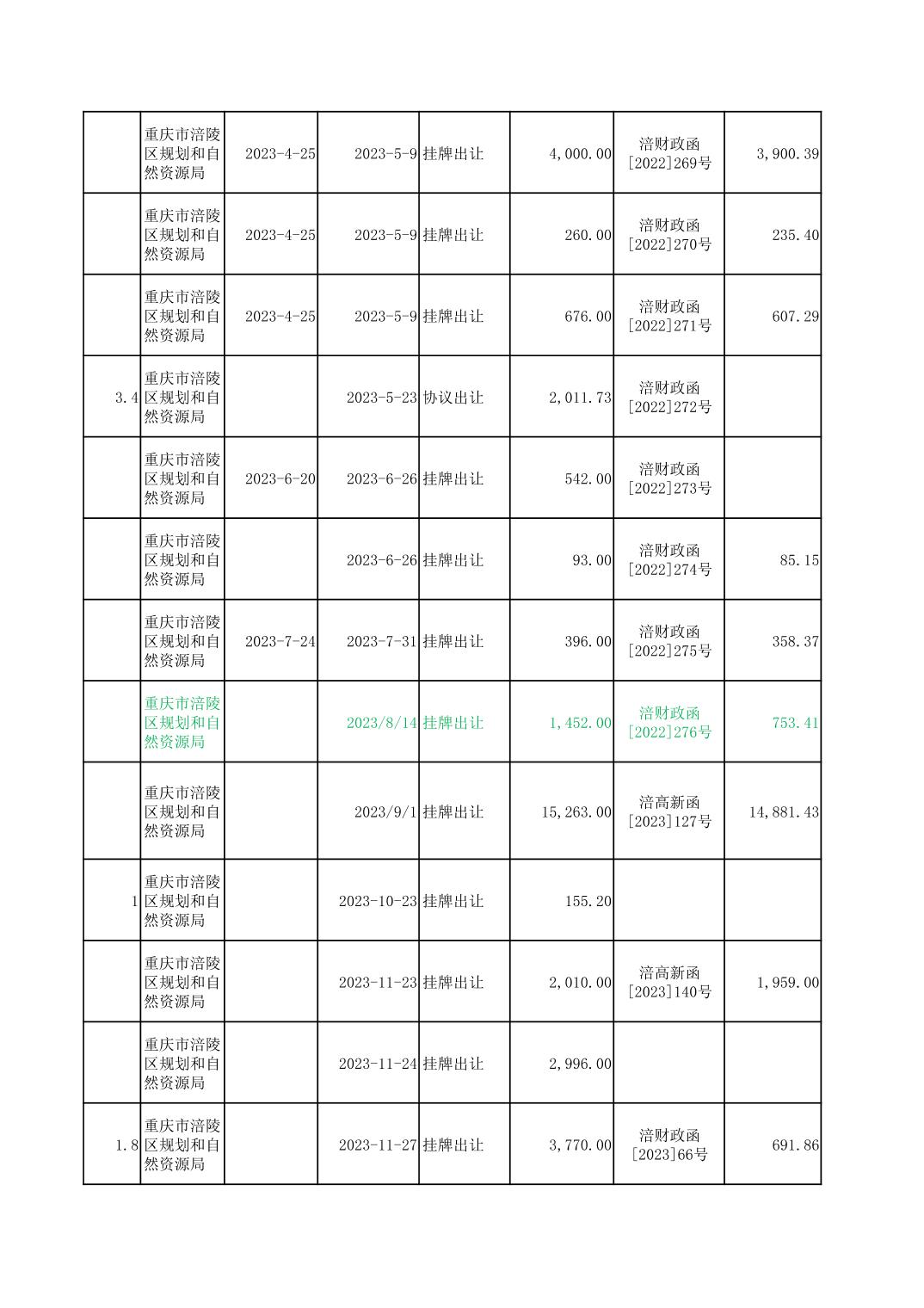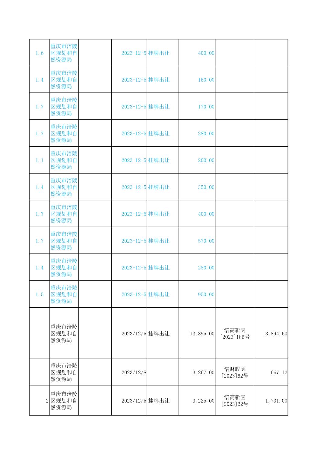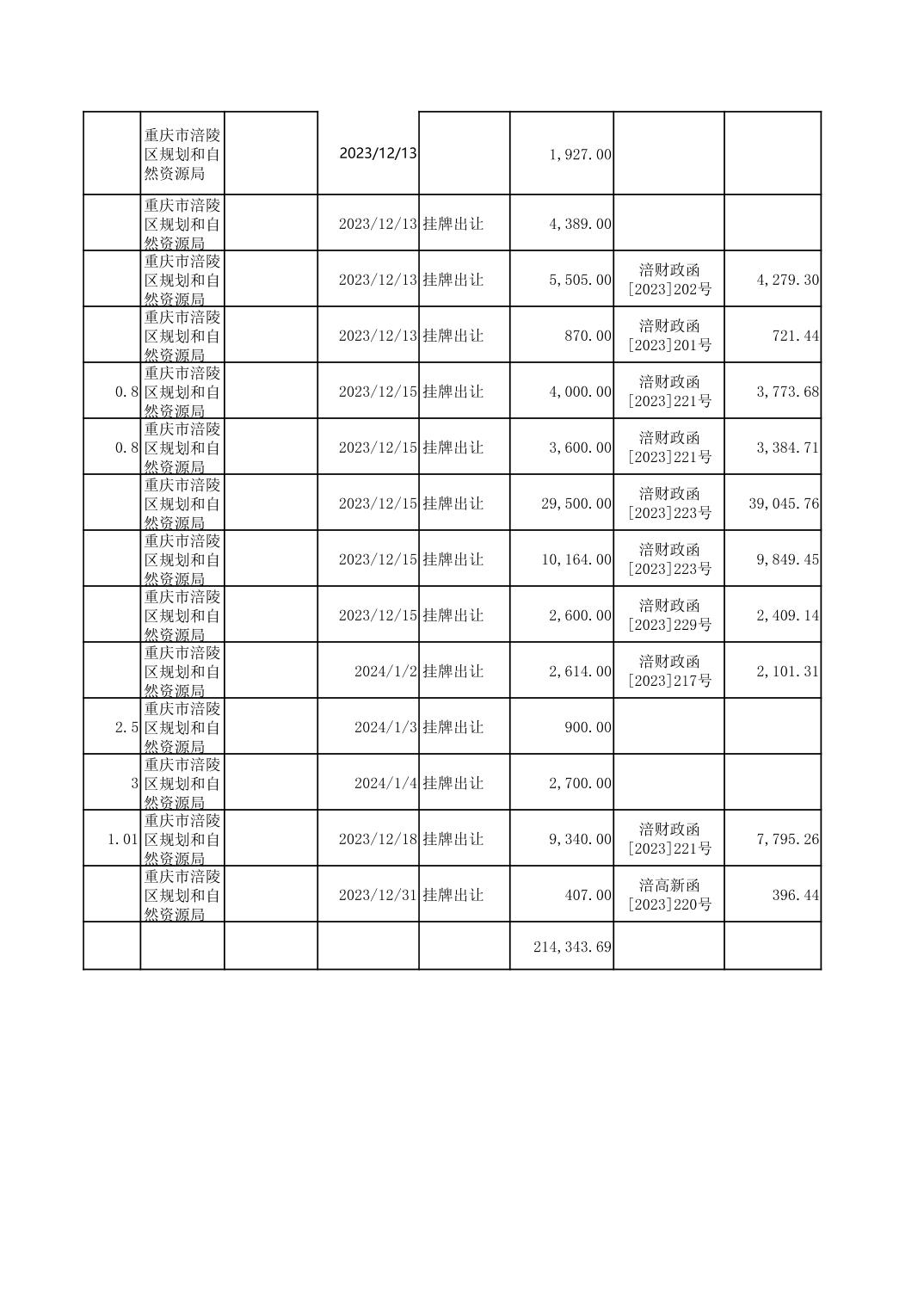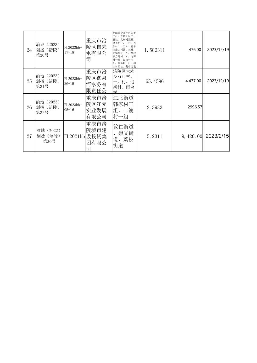 2023年国有建设用地划拨台账