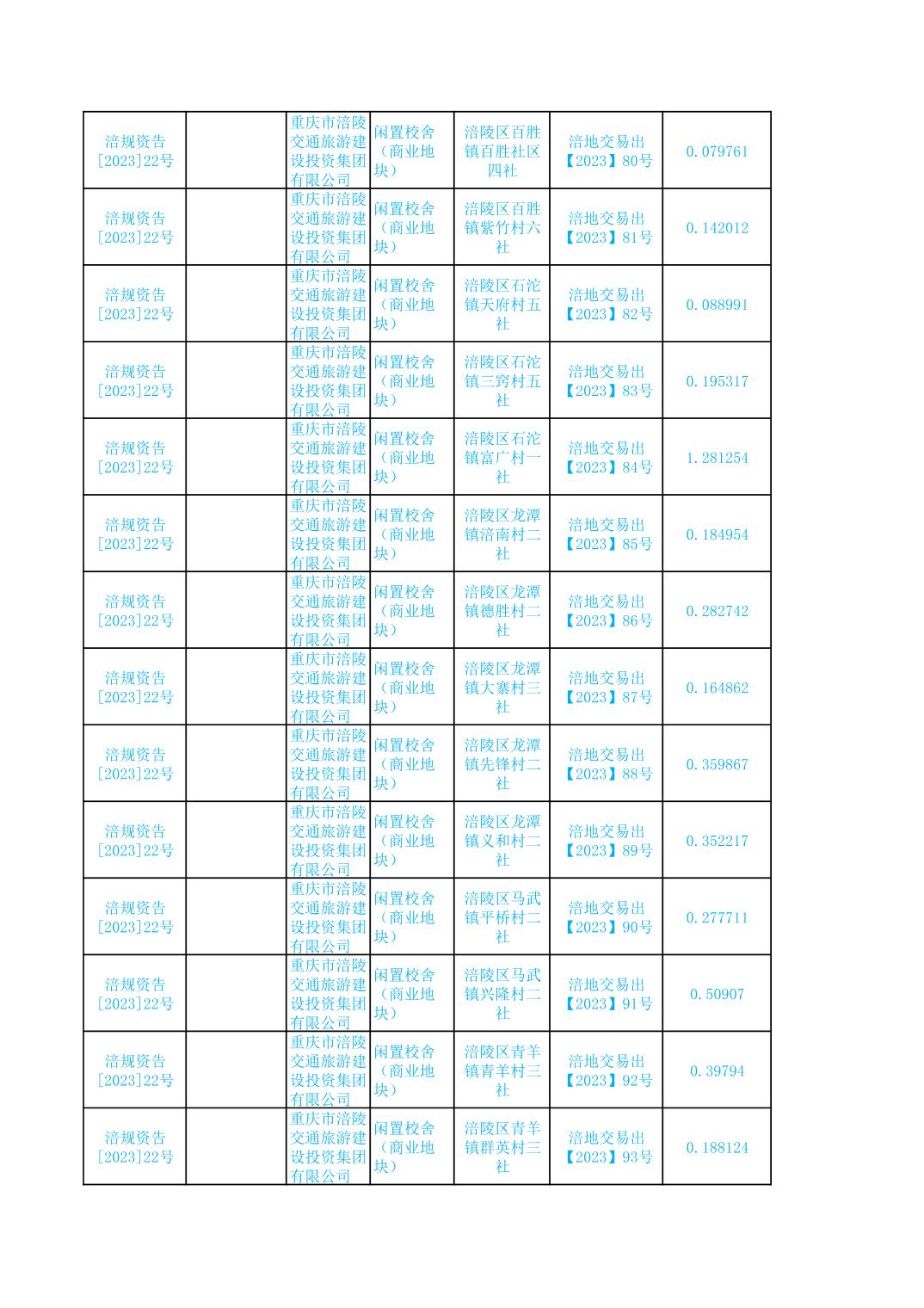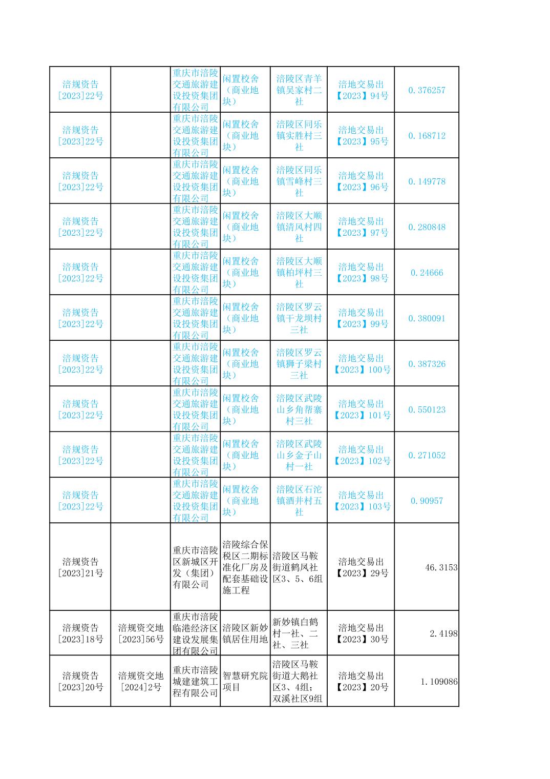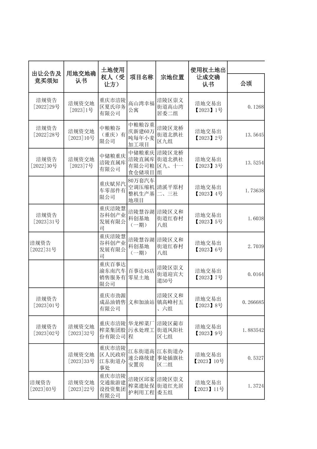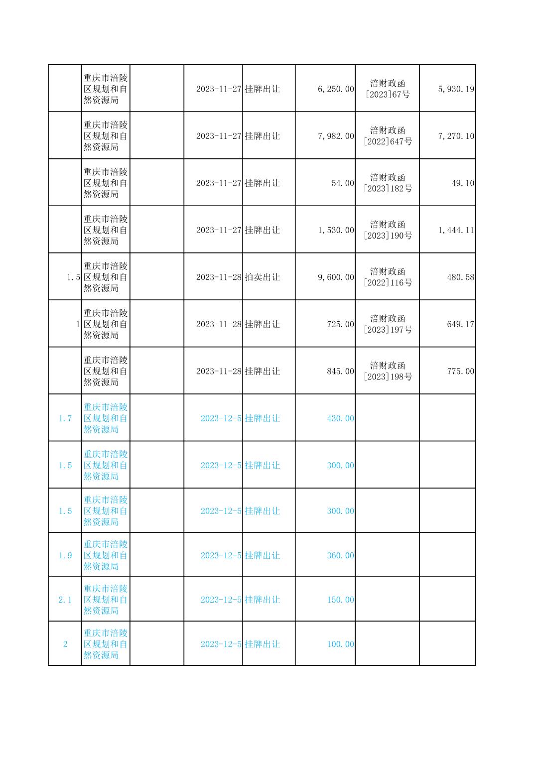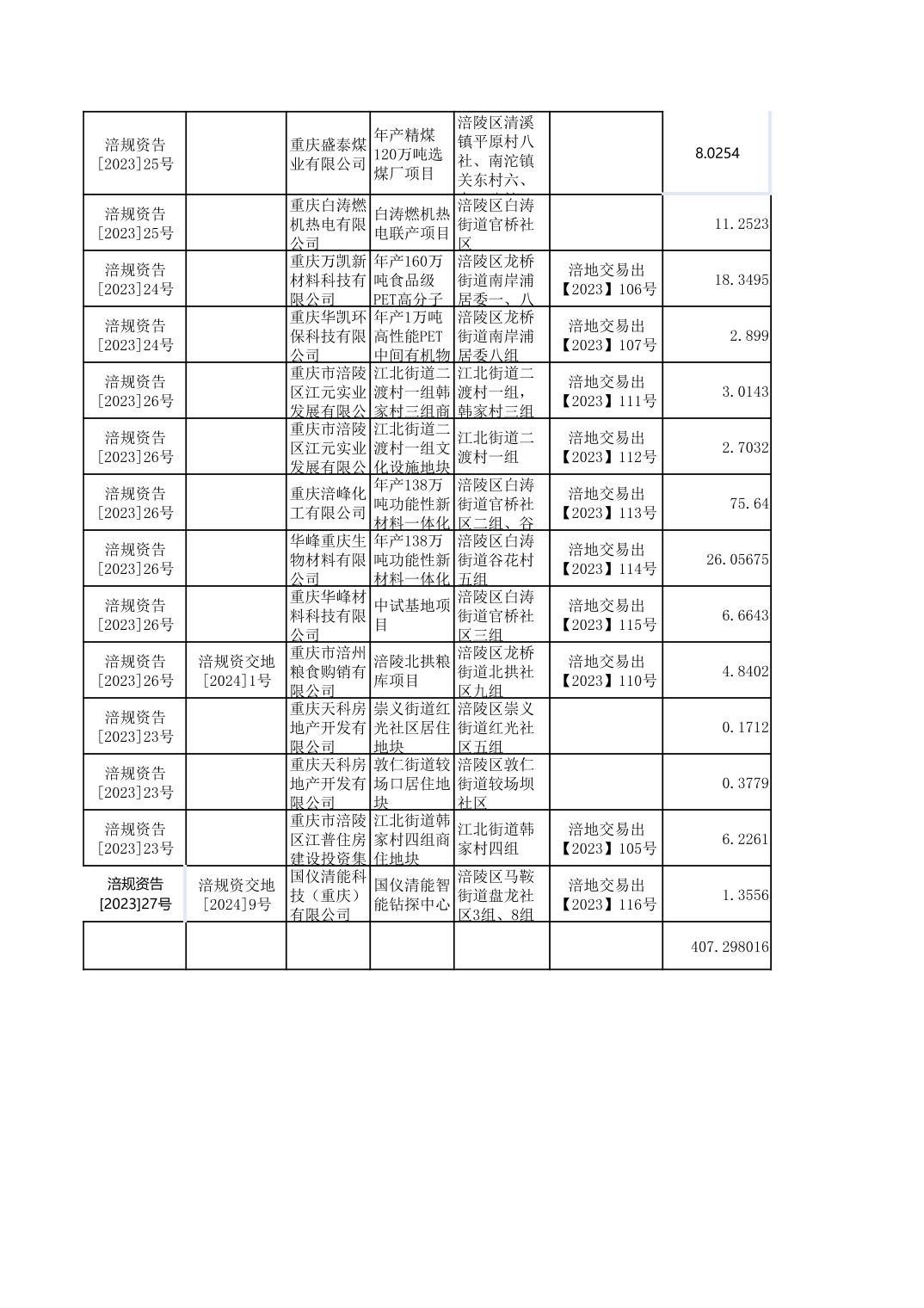 2023年国有建设用地划拨台账