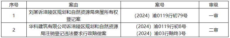 重庆市涪陵区不动产登记中心2024年不动产登记诉讼案件统计信息公示