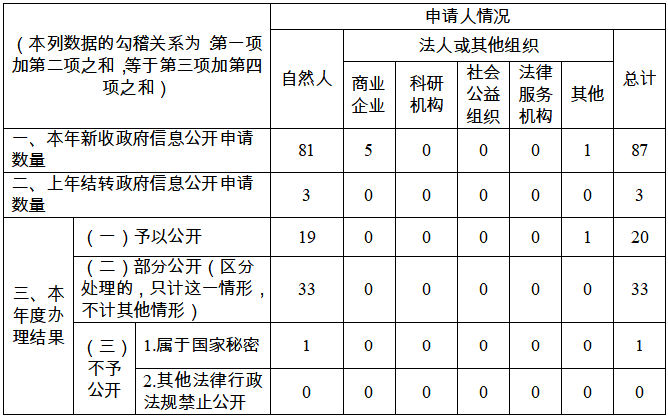 三、收到和处理政府信息公开申请情况