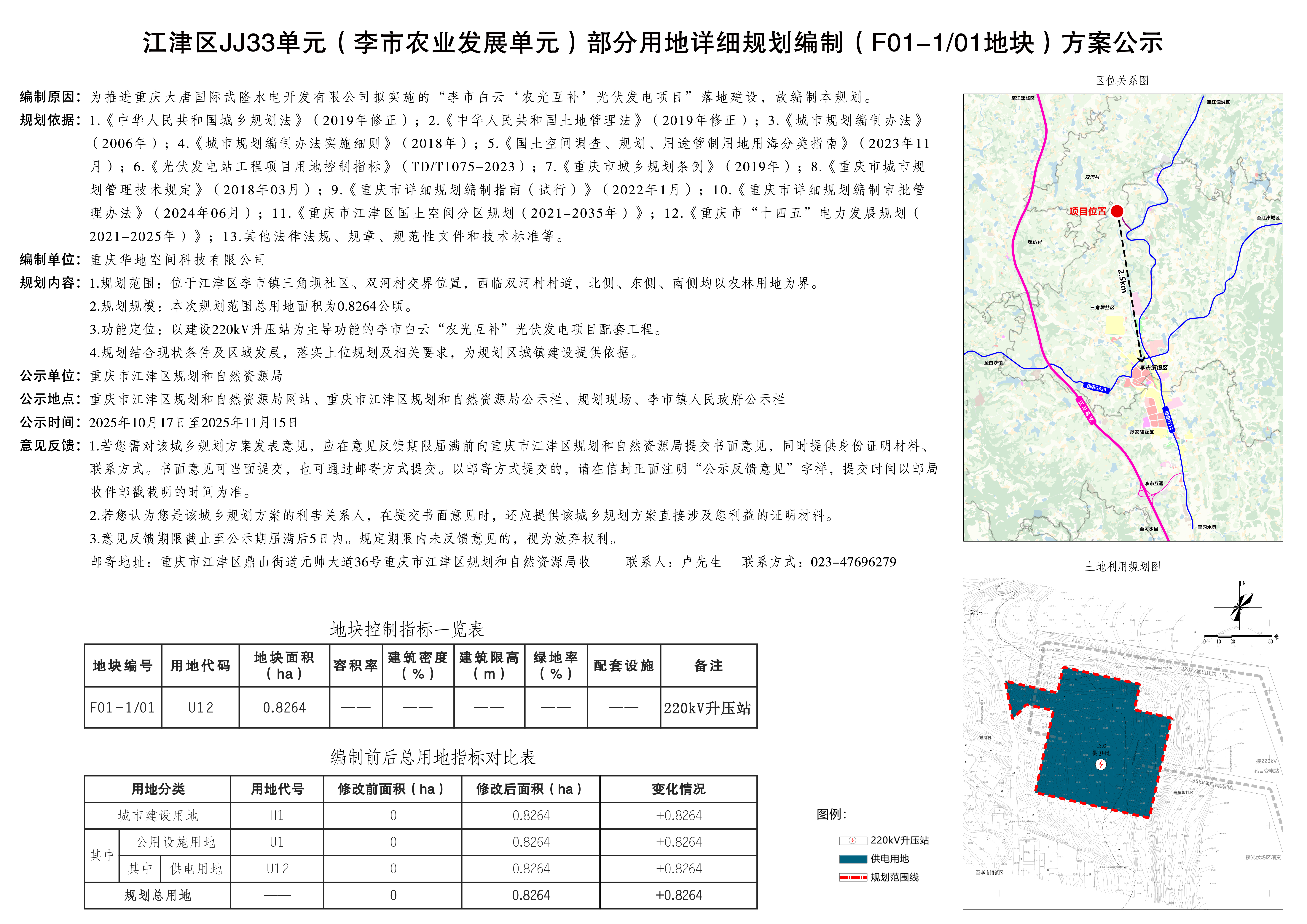 江津区JJ33单元(李市农业发展单元)部分用地详细规划编制(F01-101地块)方案公示
