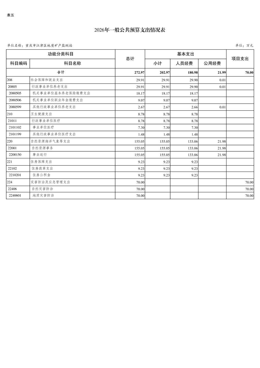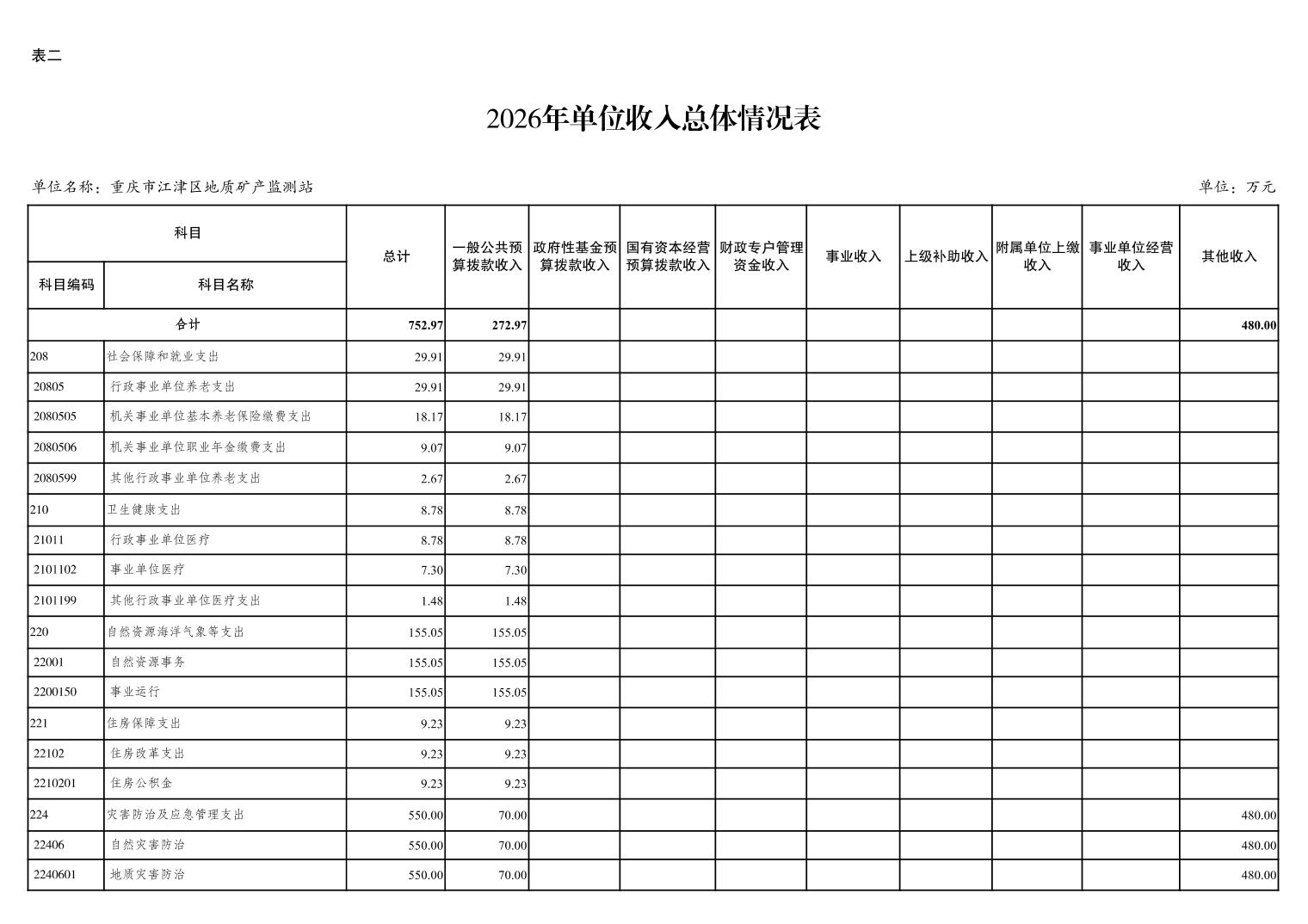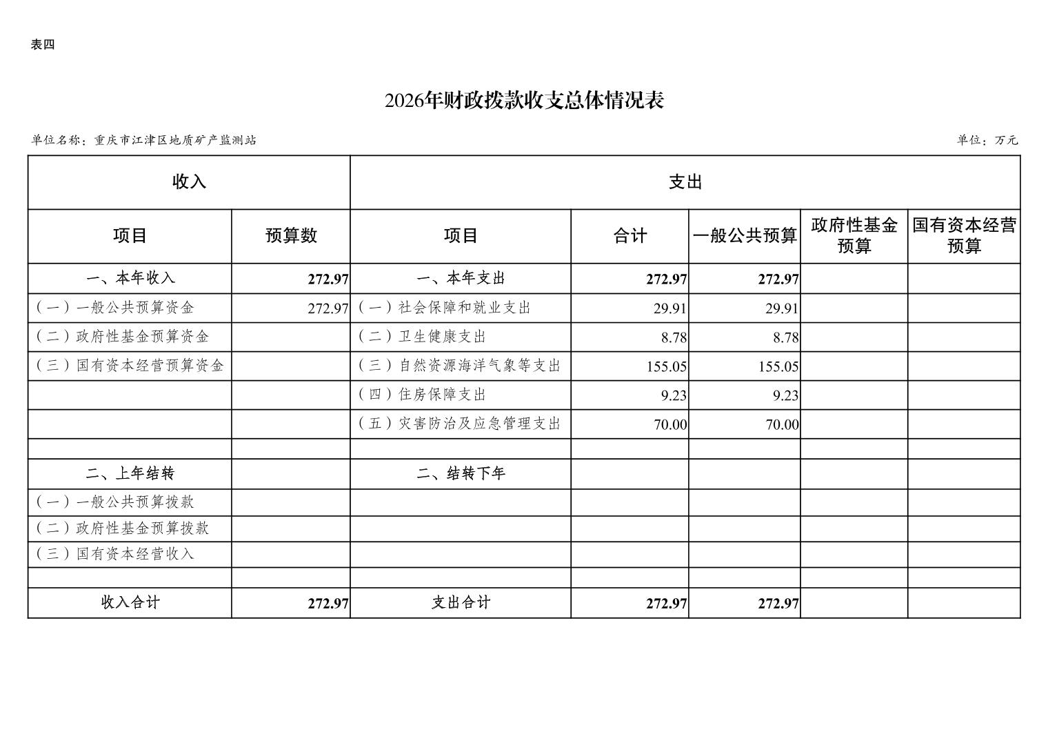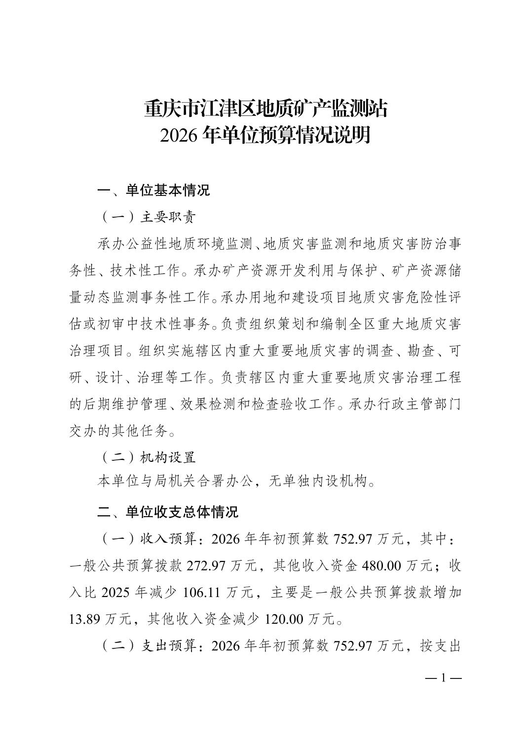 重庆市江津区地质矿产监测站2026 年单位预算情况说明