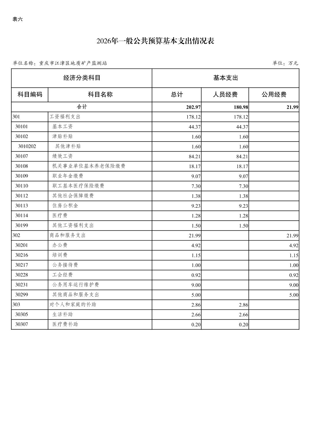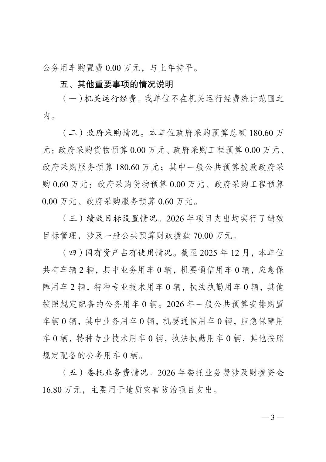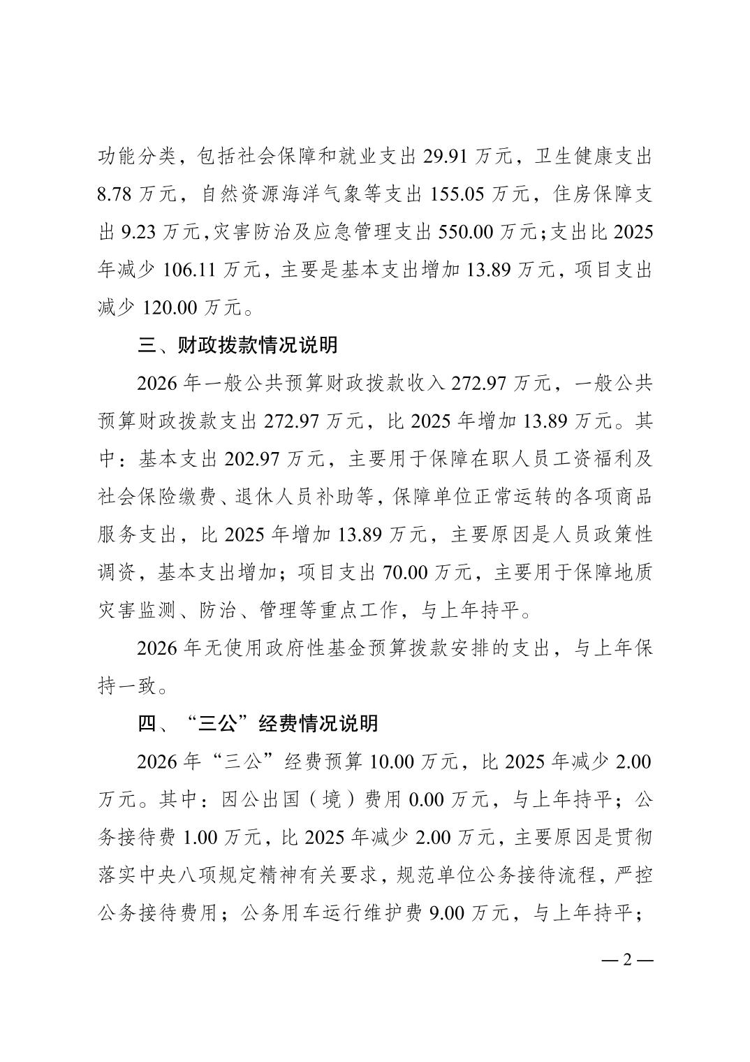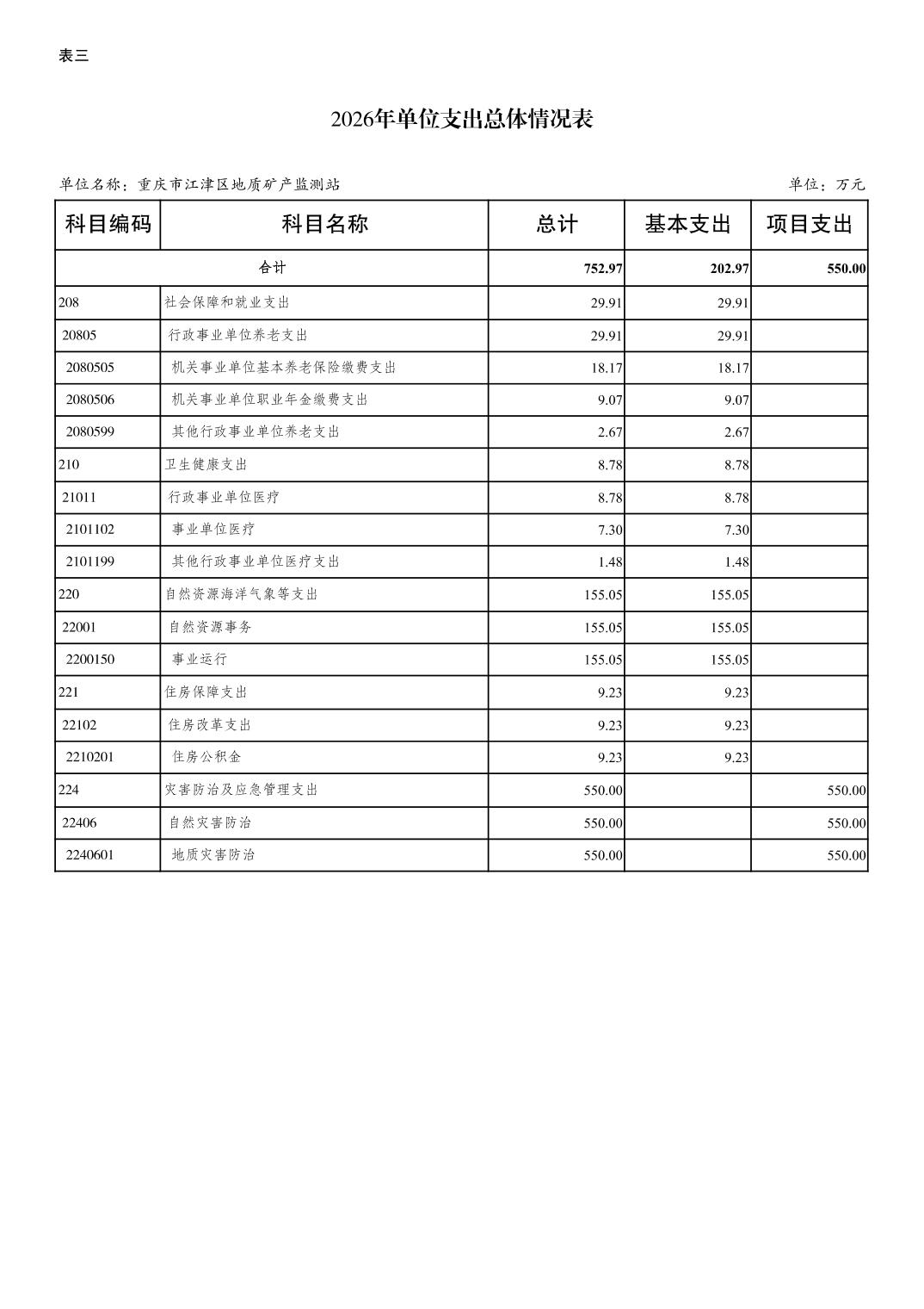 重庆市江津区地质矿产监测站2026 年单位预算情况说明