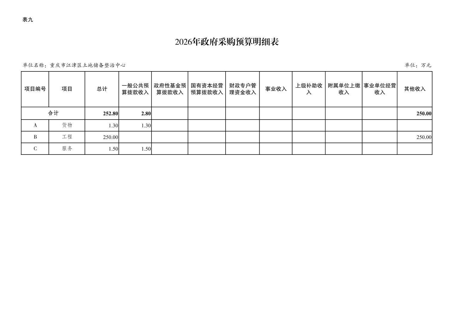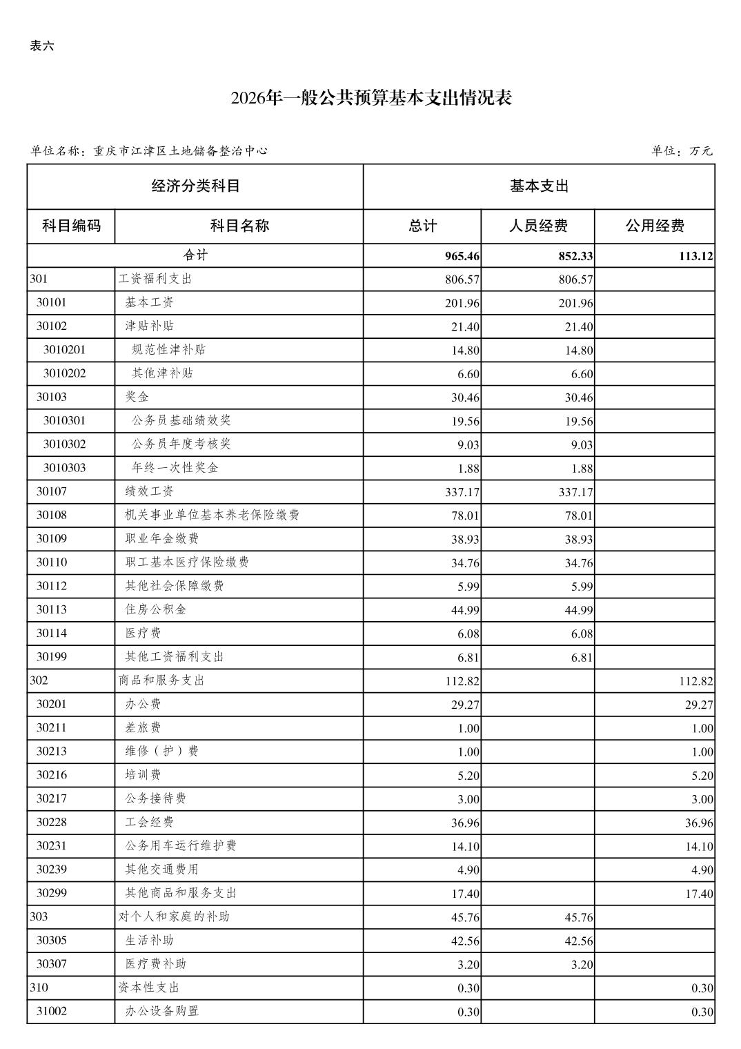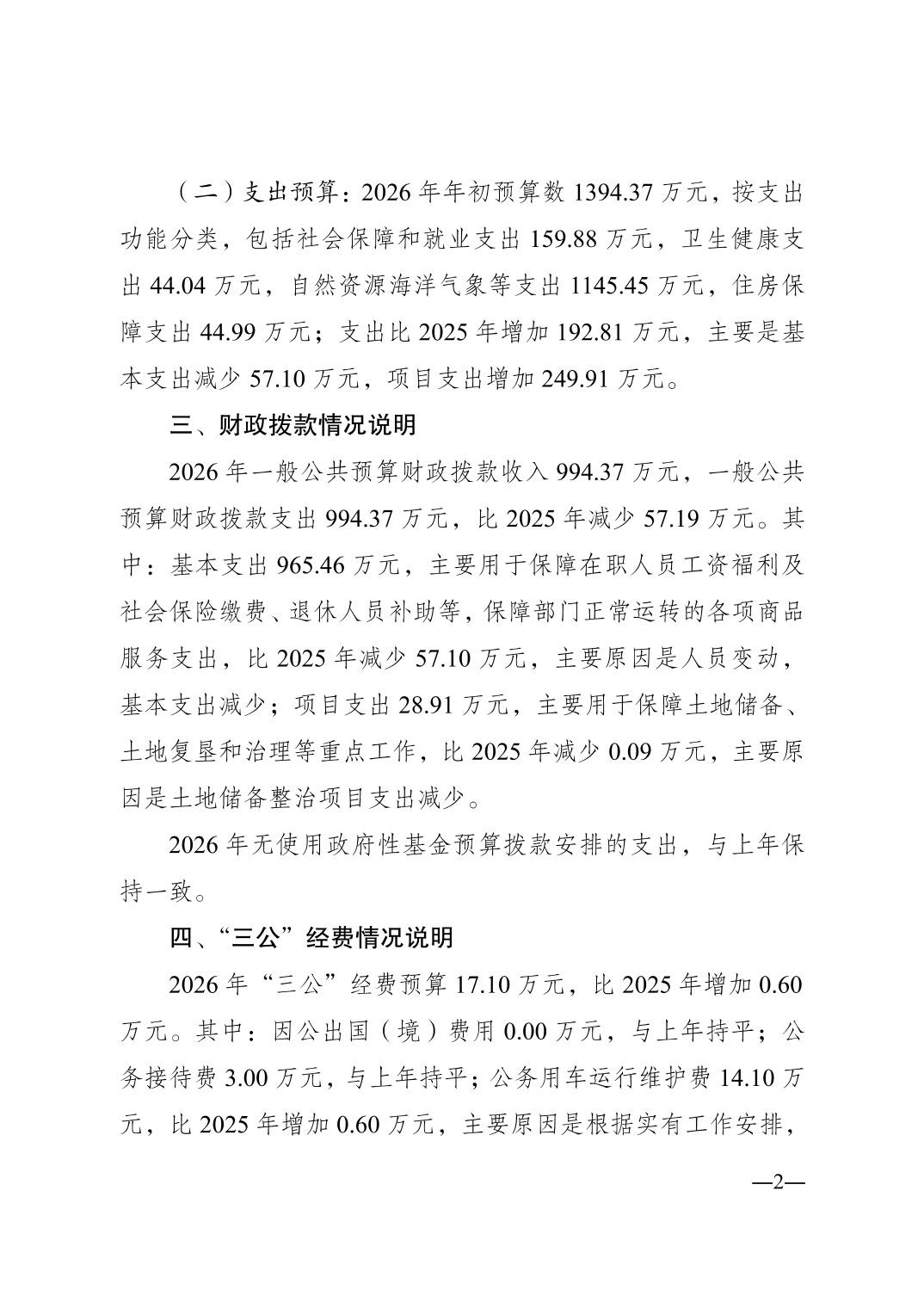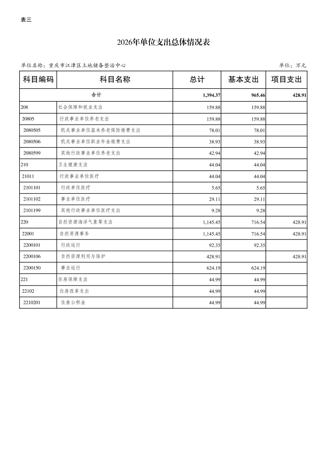 重庆市江津区土地储备整治中心2026 年单位预算情况说明