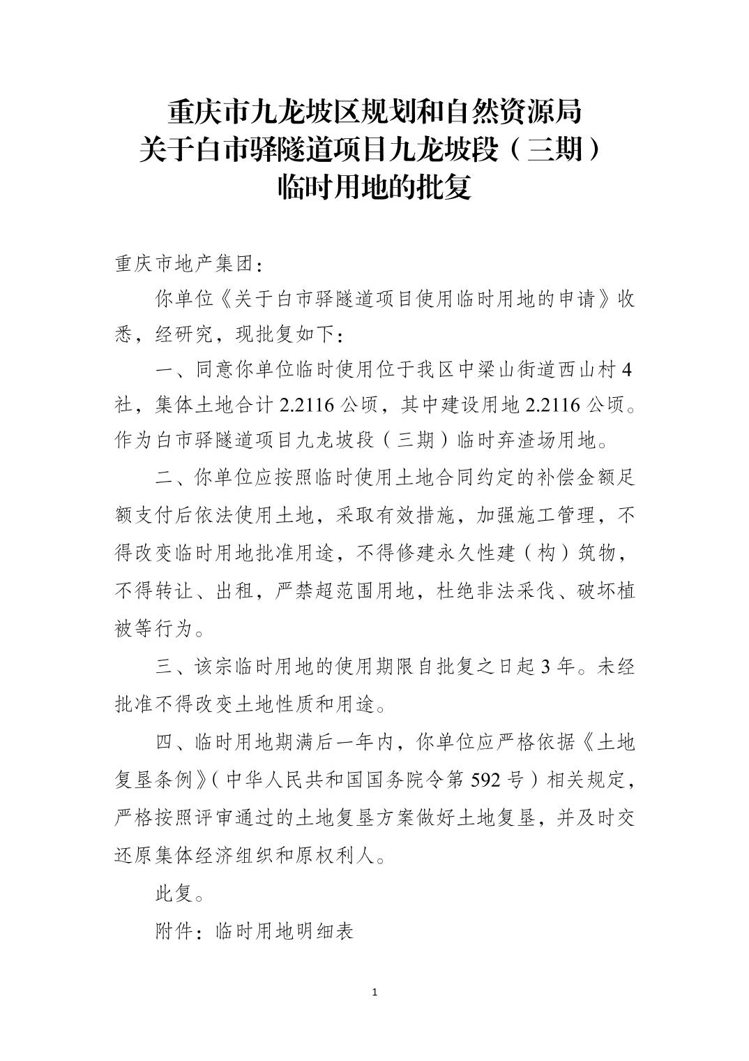 1.关于白市驿隧道项目九龙坡段(三期)临时用地的批复.pdf
