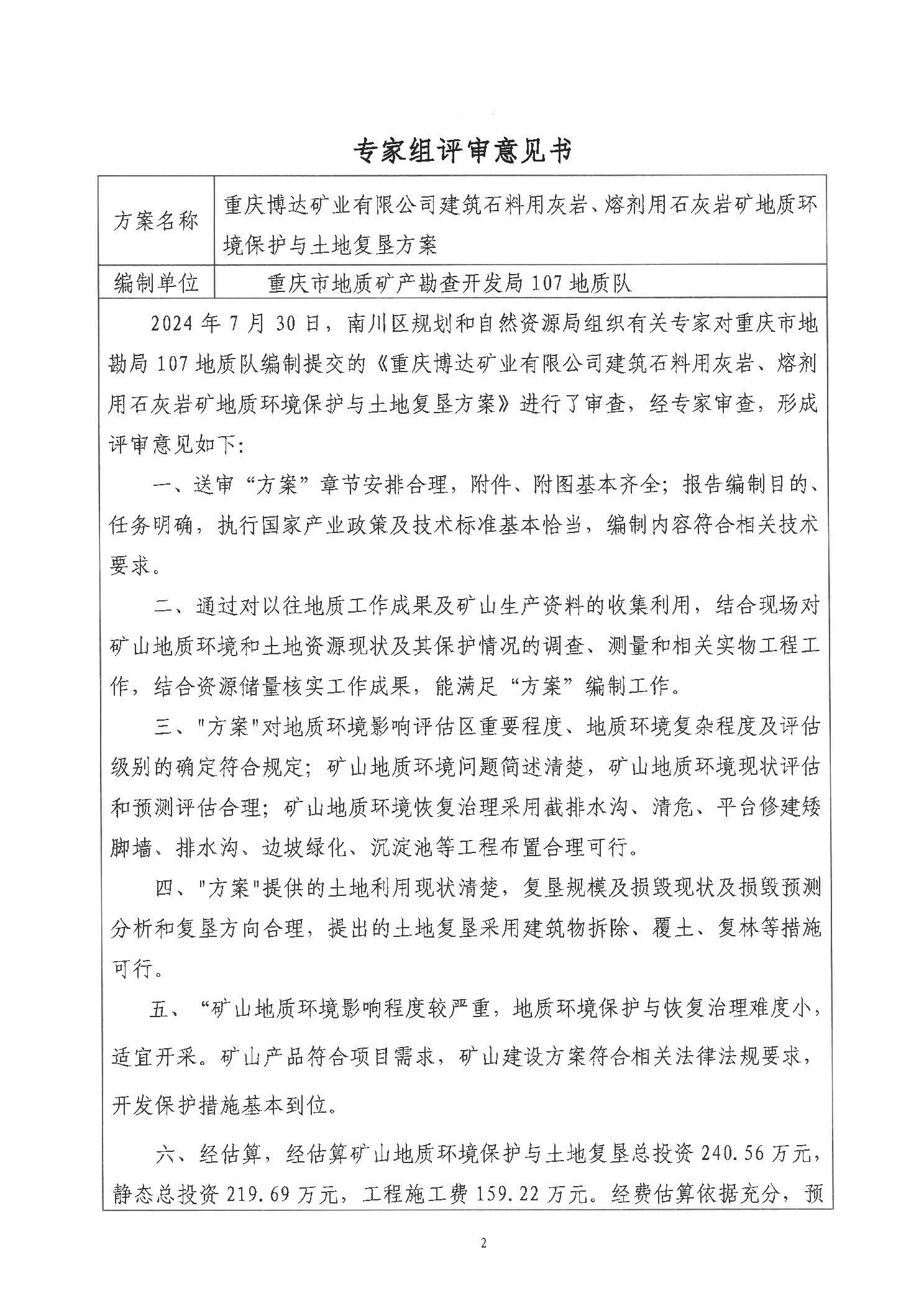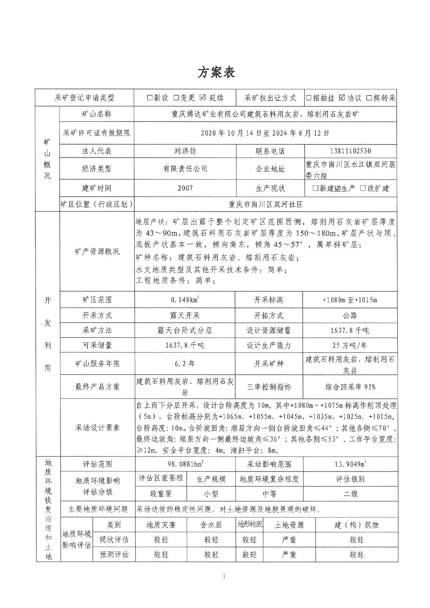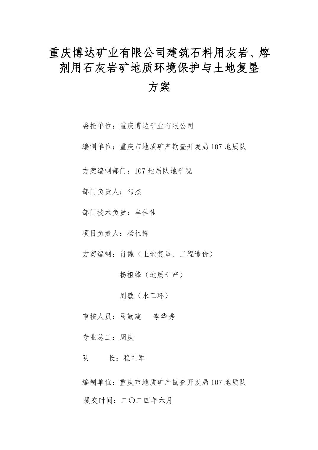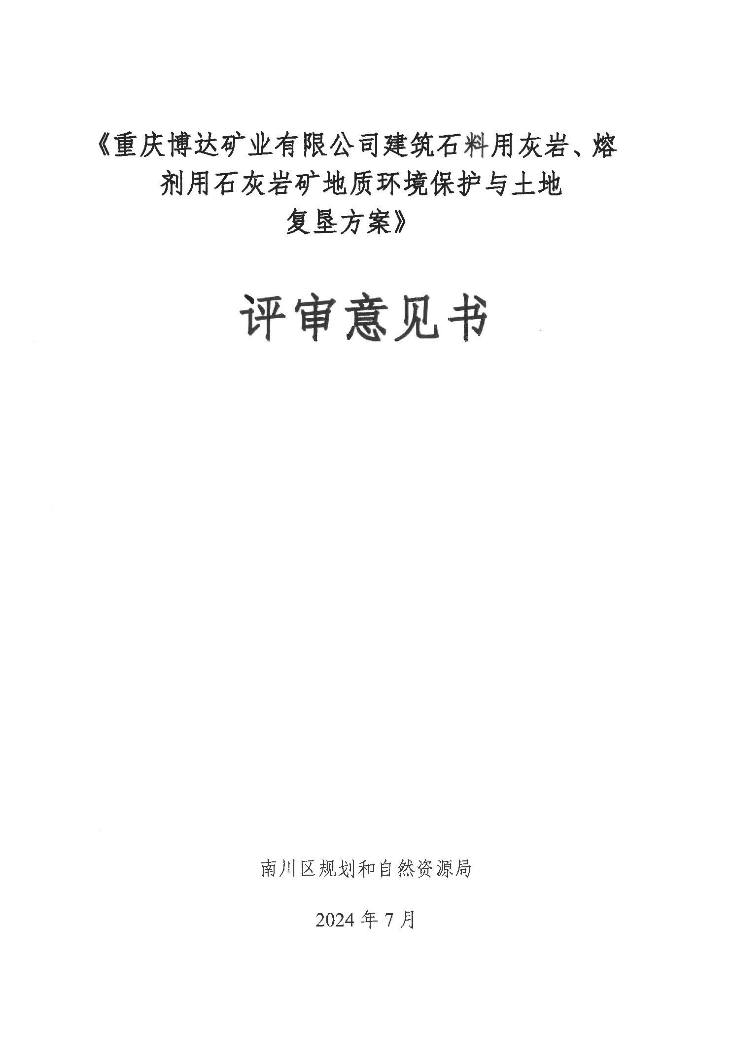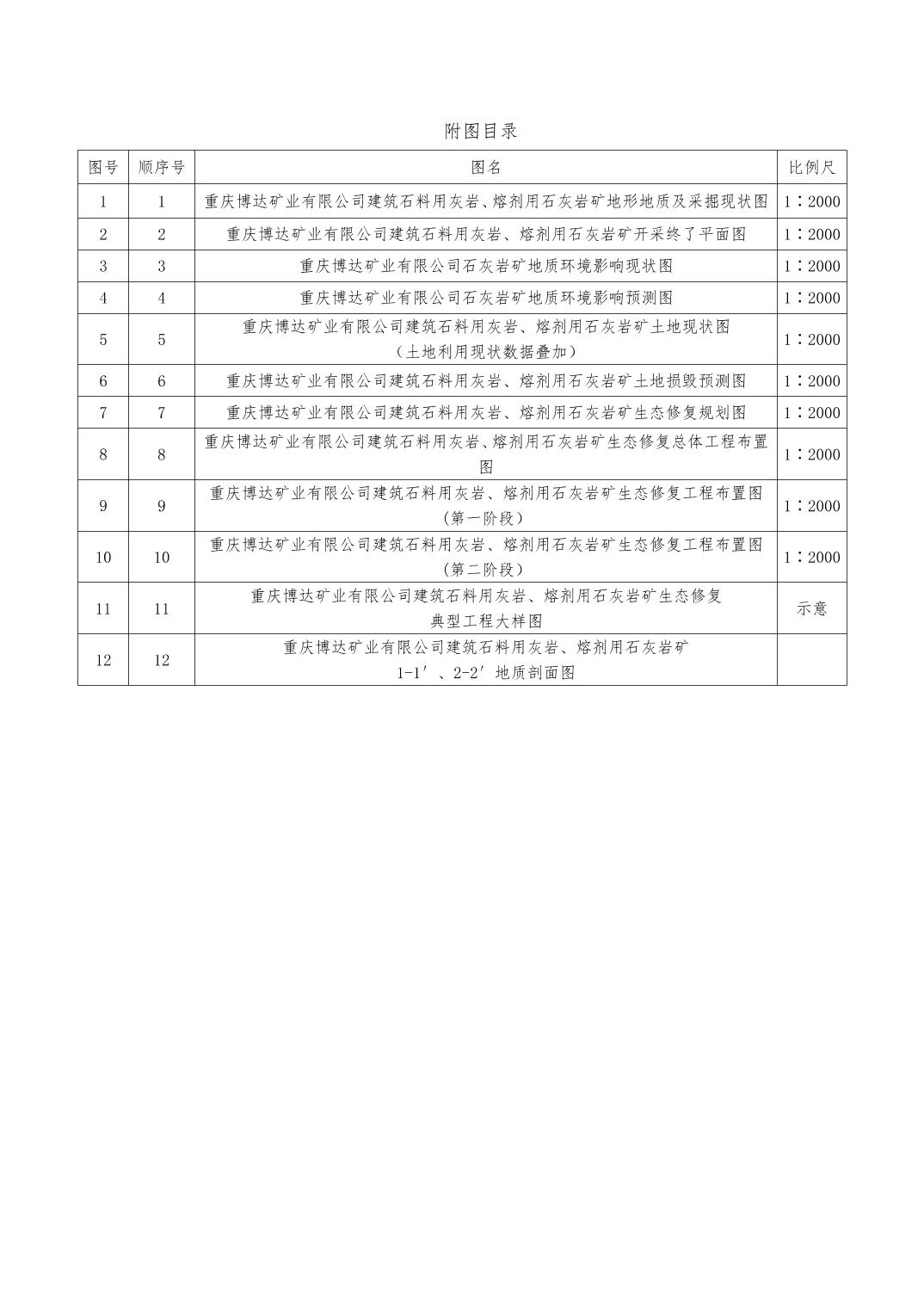 附件:1.重庆博达矿业有限公司建筑石料用灰岩 熔剂用灰岩矿地质环境保护与土地复垦方案