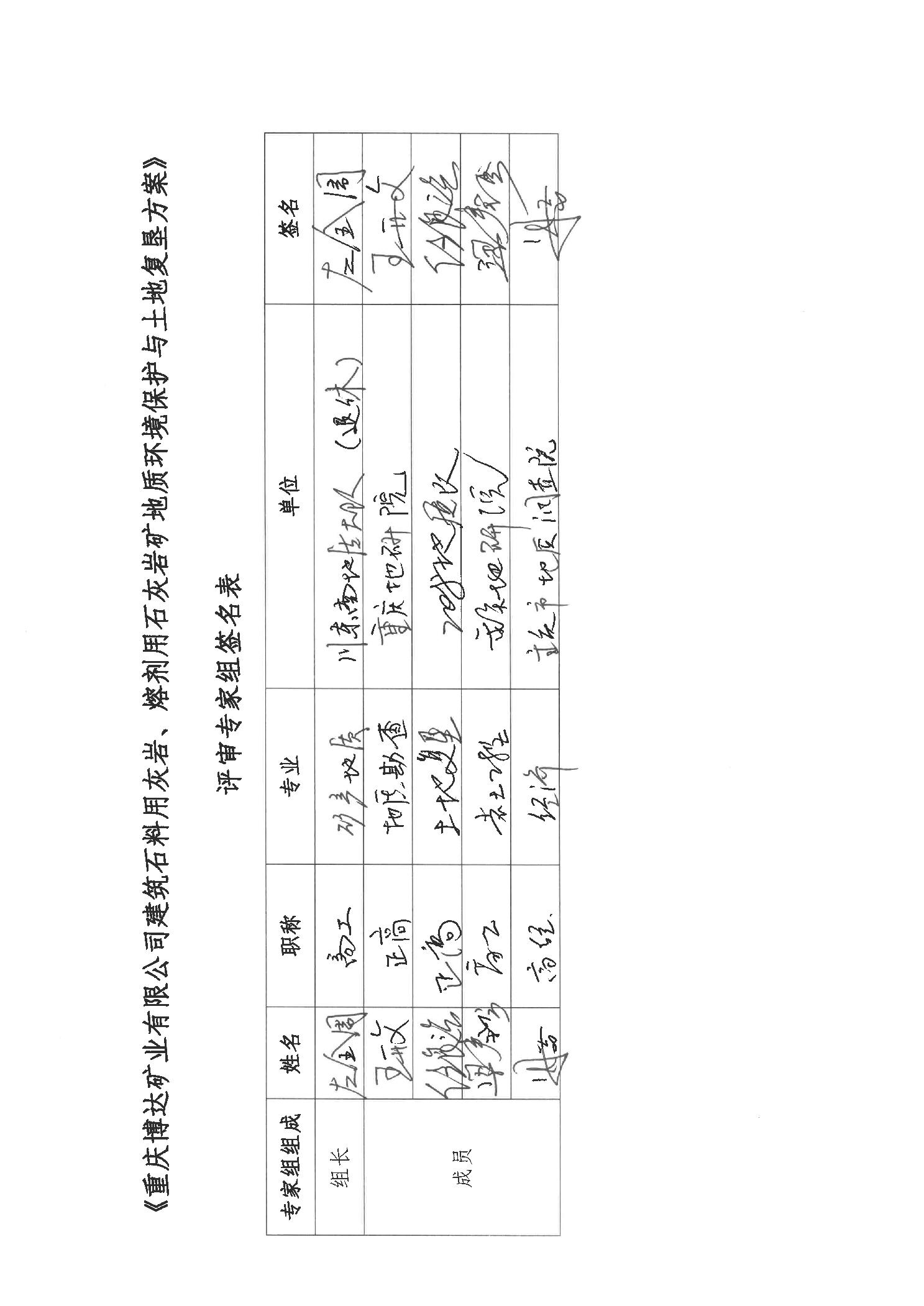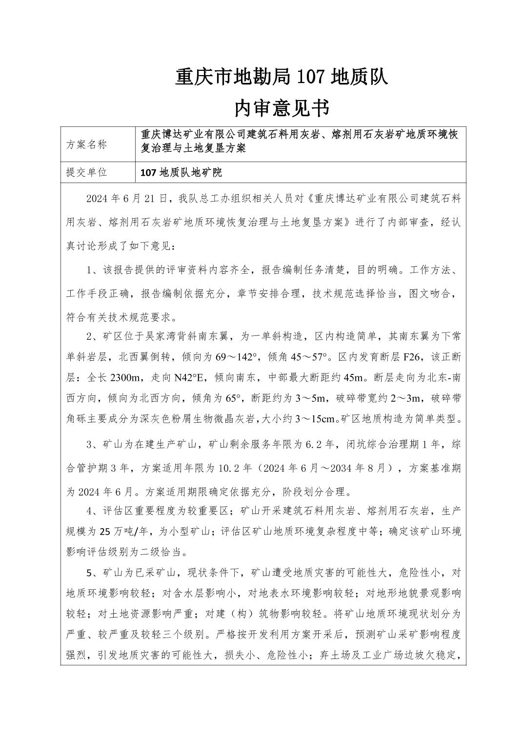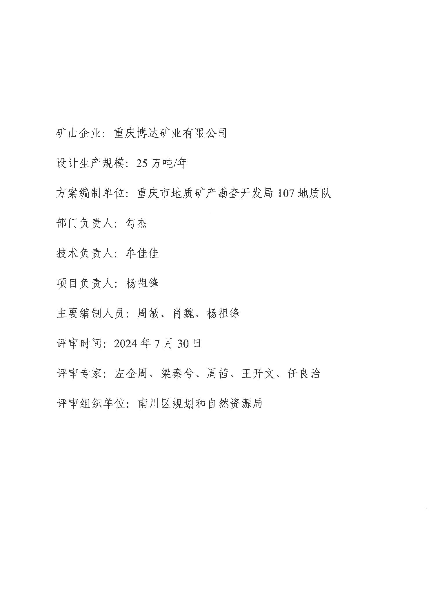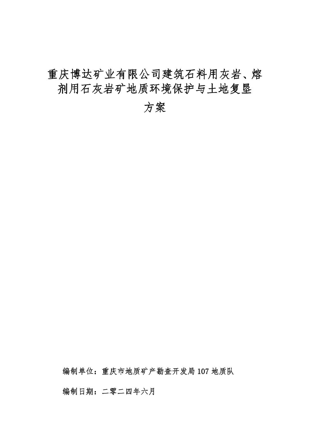 附件:1.重庆博达矿业有限公司建筑石料用灰岩 熔剂用灰岩矿地质环境保护与土地复垦方案