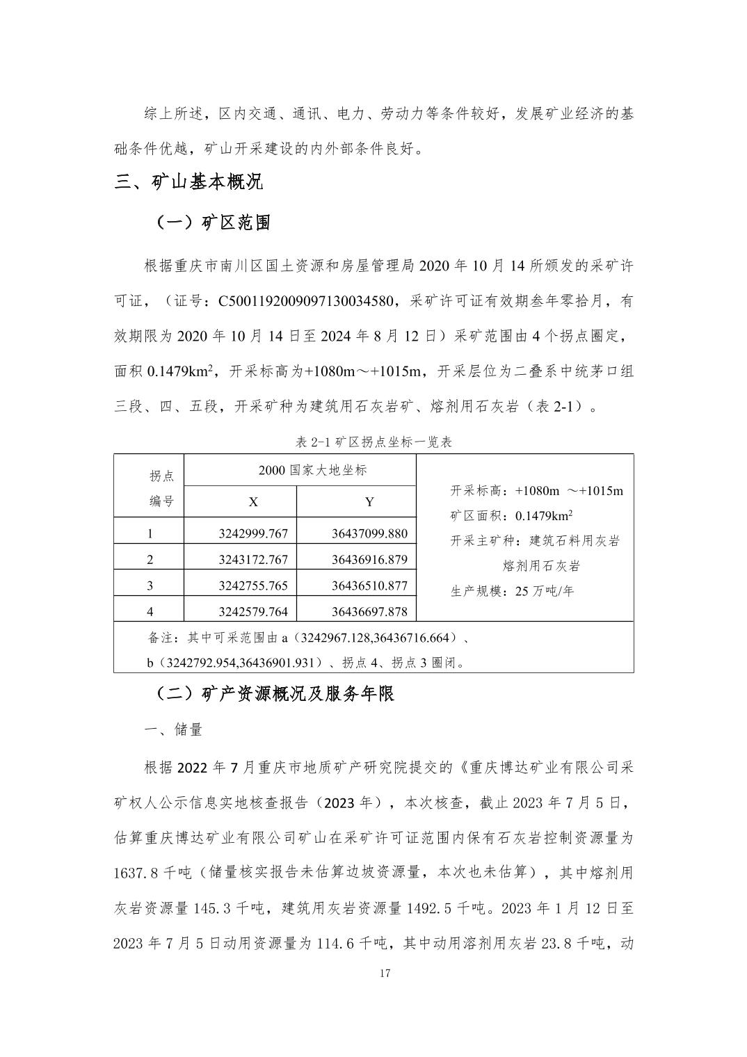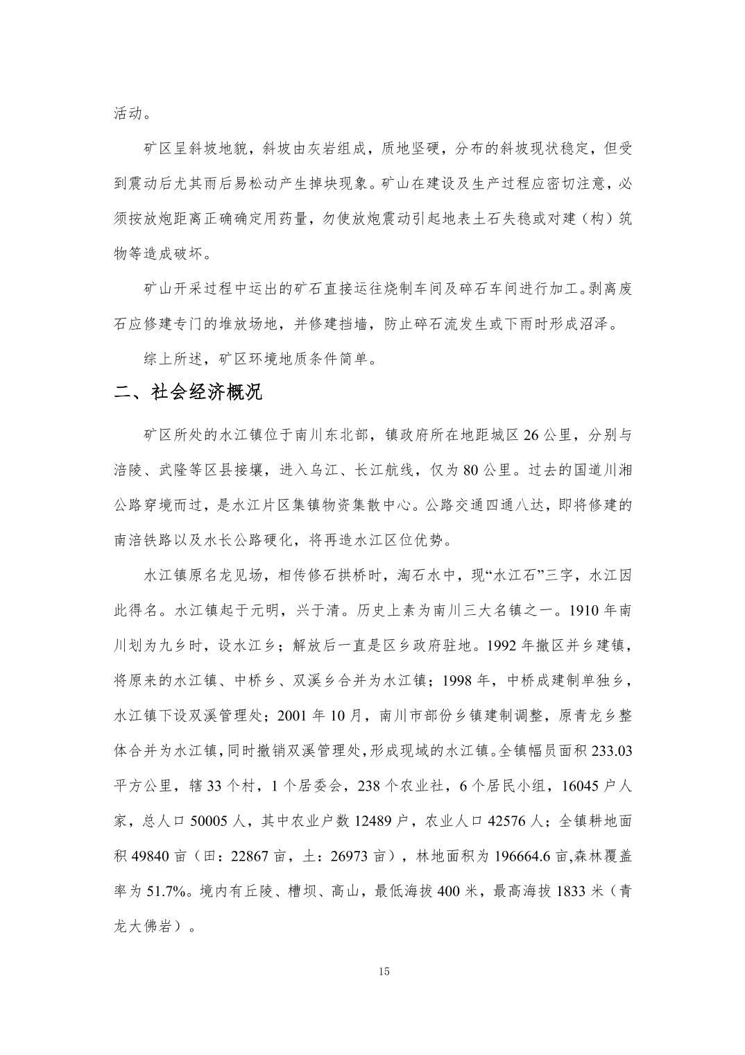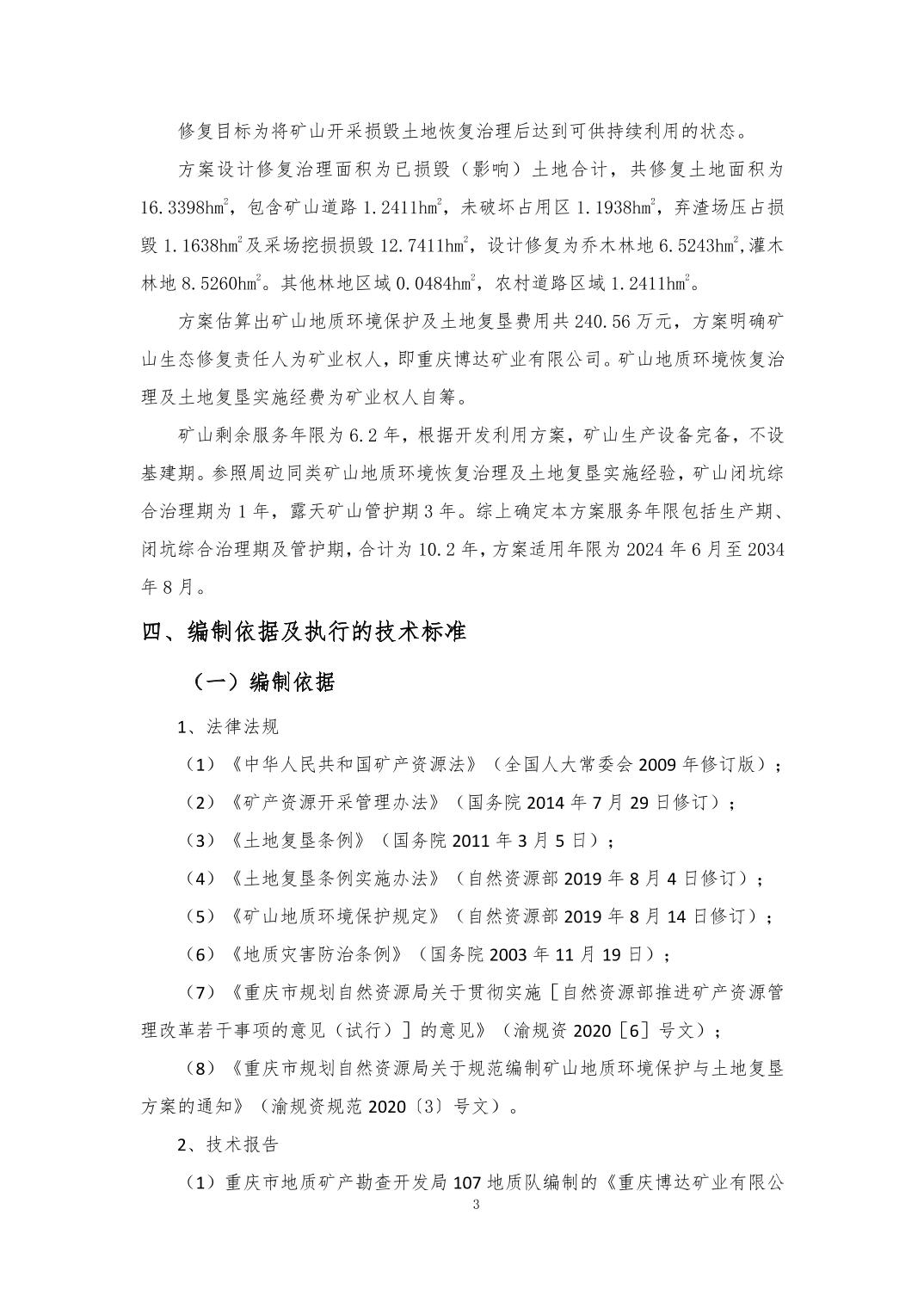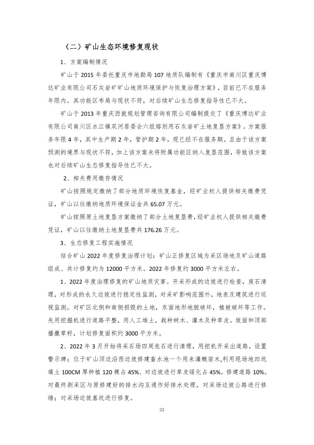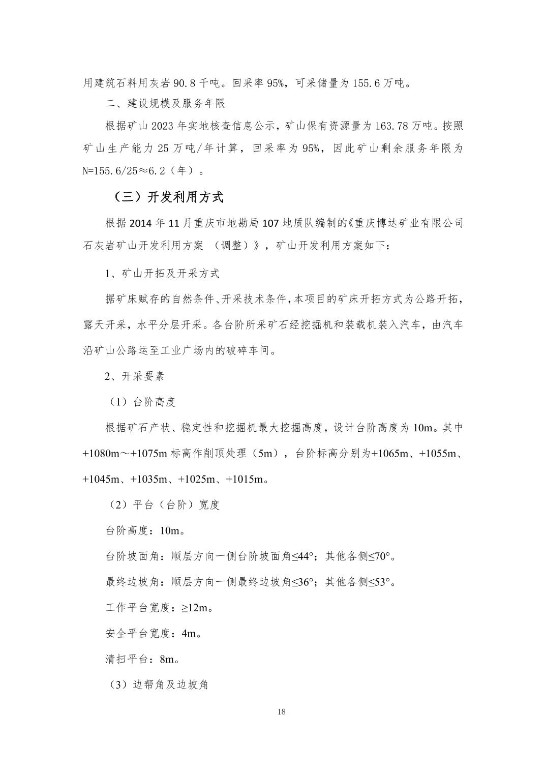附件:1.重庆博达矿业有限公司建筑石料用灰岩 熔剂用灰岩矿地质环境保护与土地复垦方案