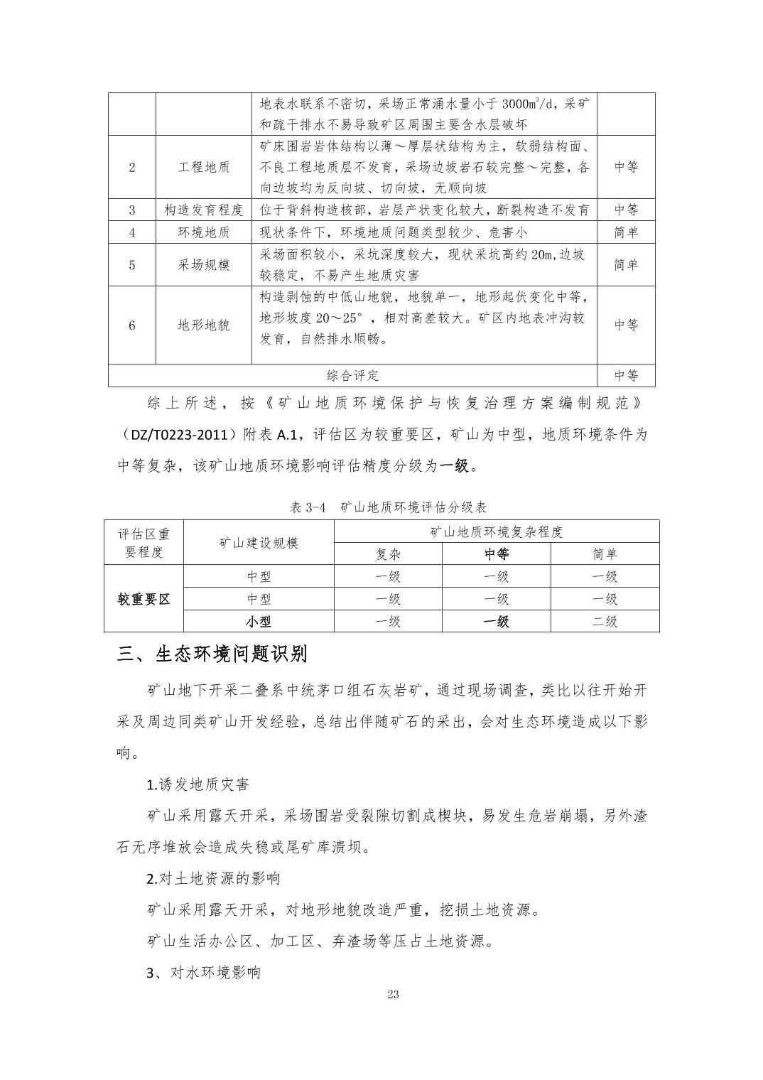 建筑石料用灰岩 熔剂用石灰岩矿地质环境保护与土地复垦方案审查结果公示