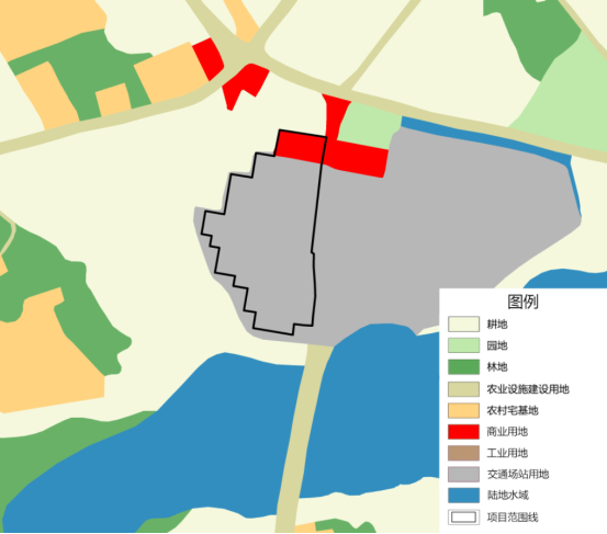 项目范围面积0.39公顷,其中,商业用地0.03公顷,交通场站用地0.36公顷。