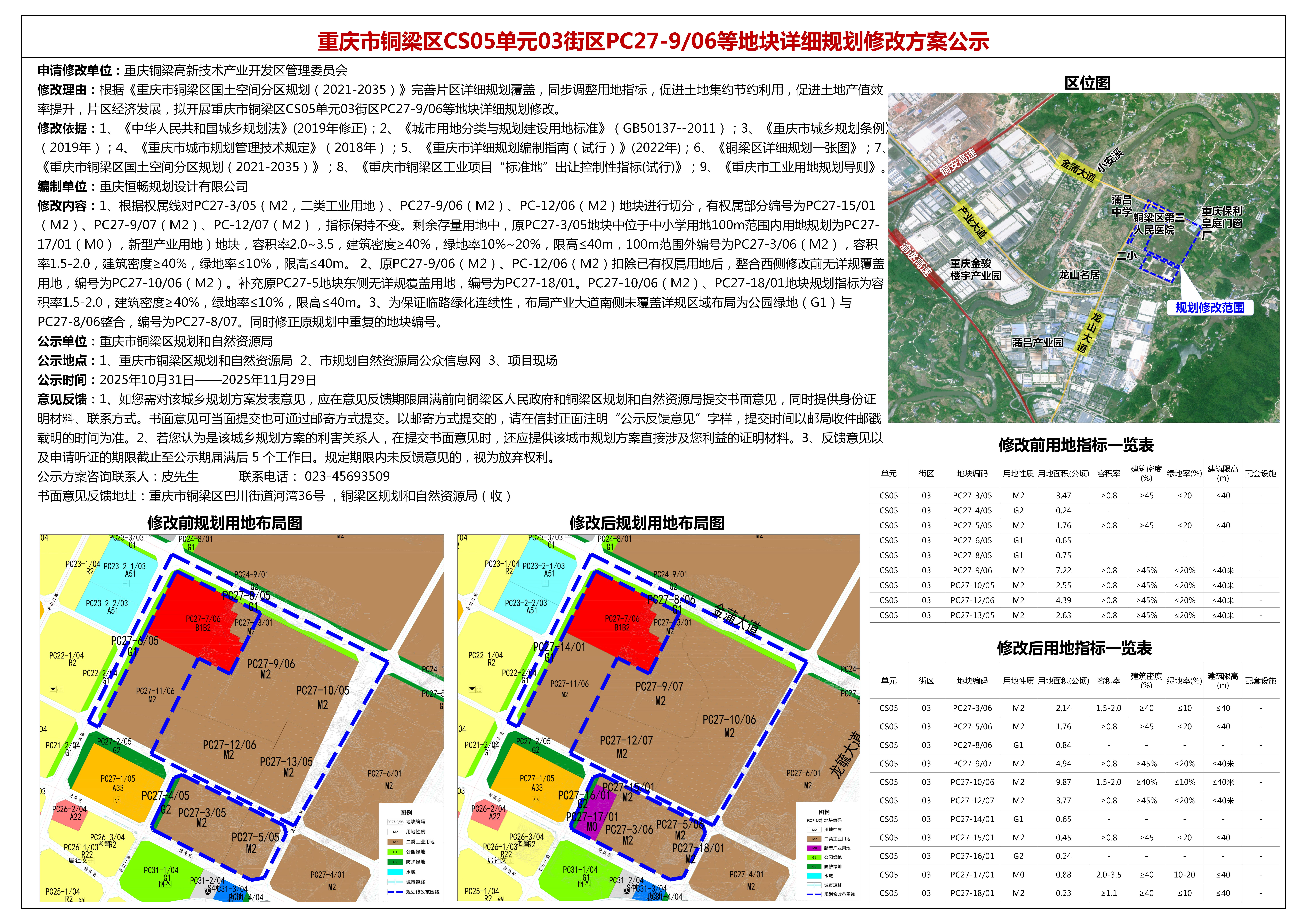重庆市铜梁区CS05单元03街区PC27-9/06等地块详细规划修改方案公示