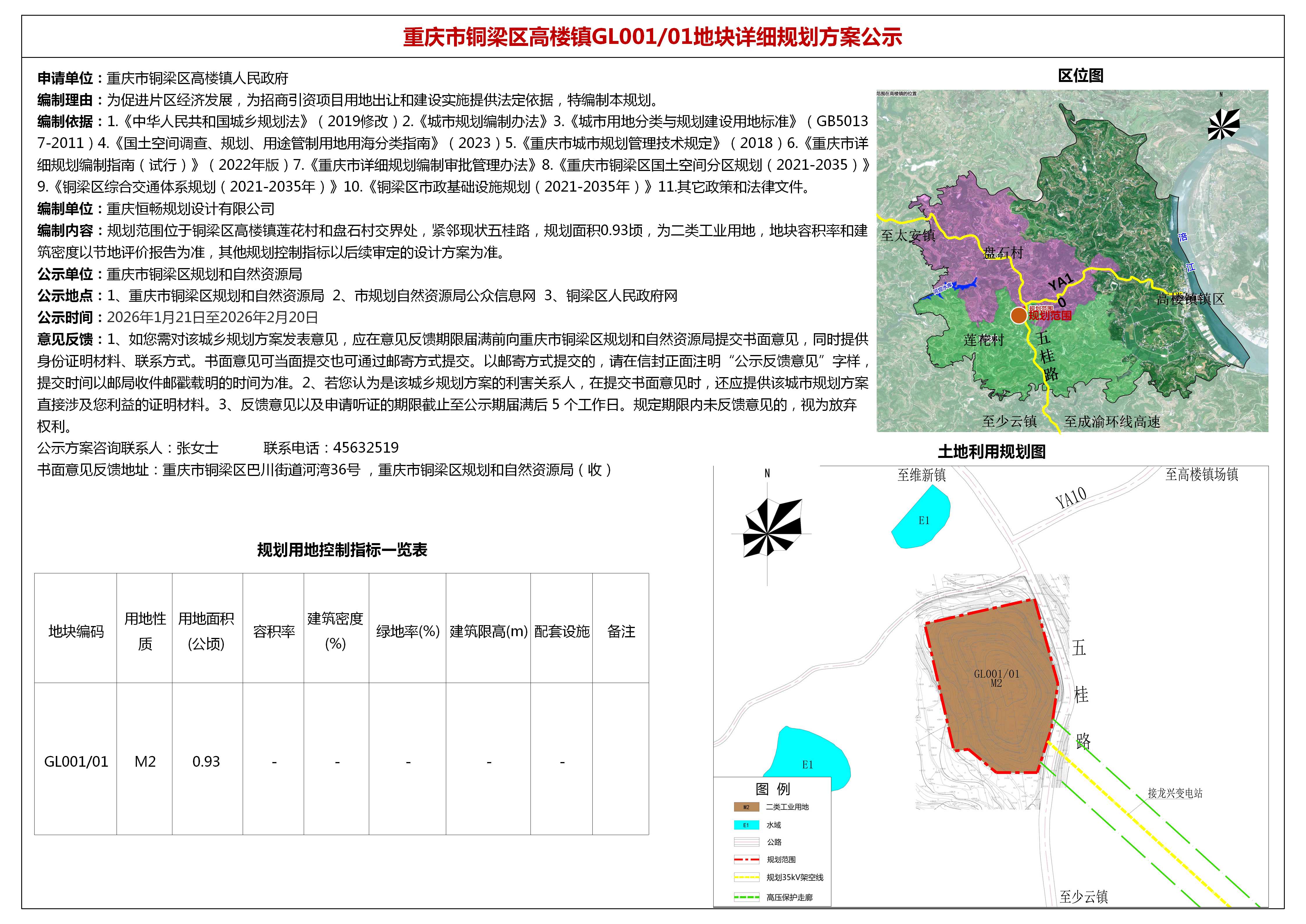 重庆市铜梁区高楼镇GL001地块详细规划方案公示