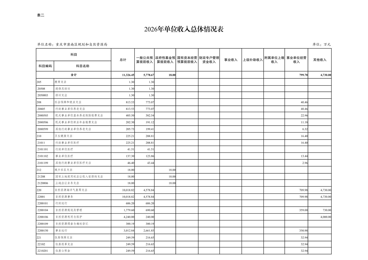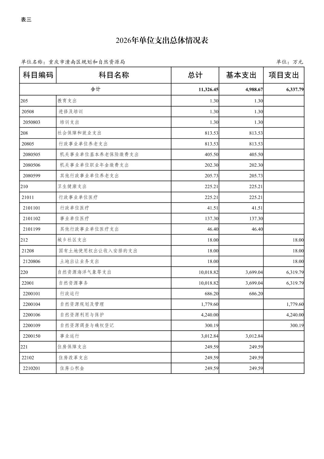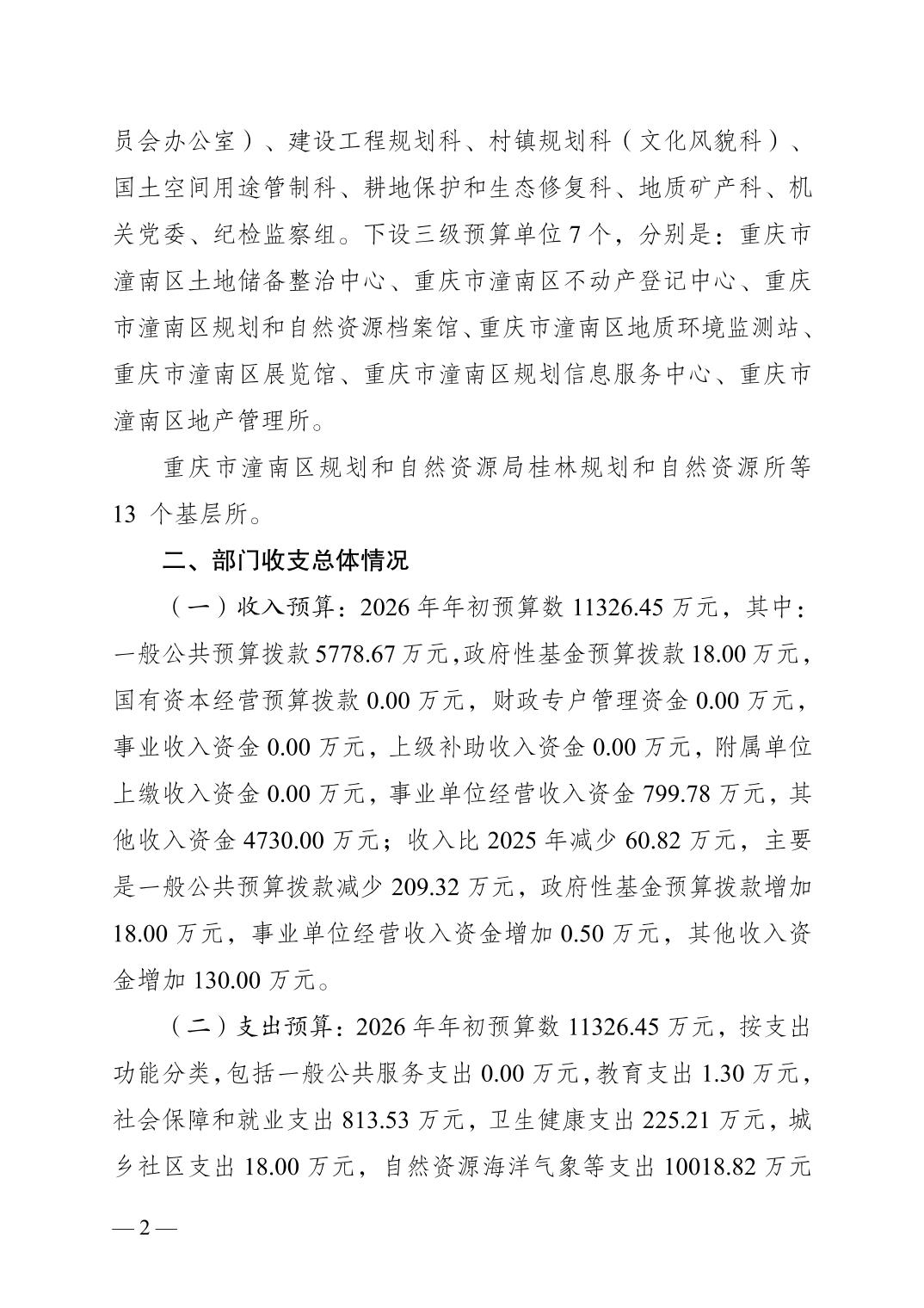 重庆市潼南区规划和自然资源局2026年预算情况说明