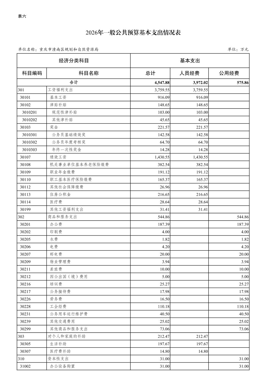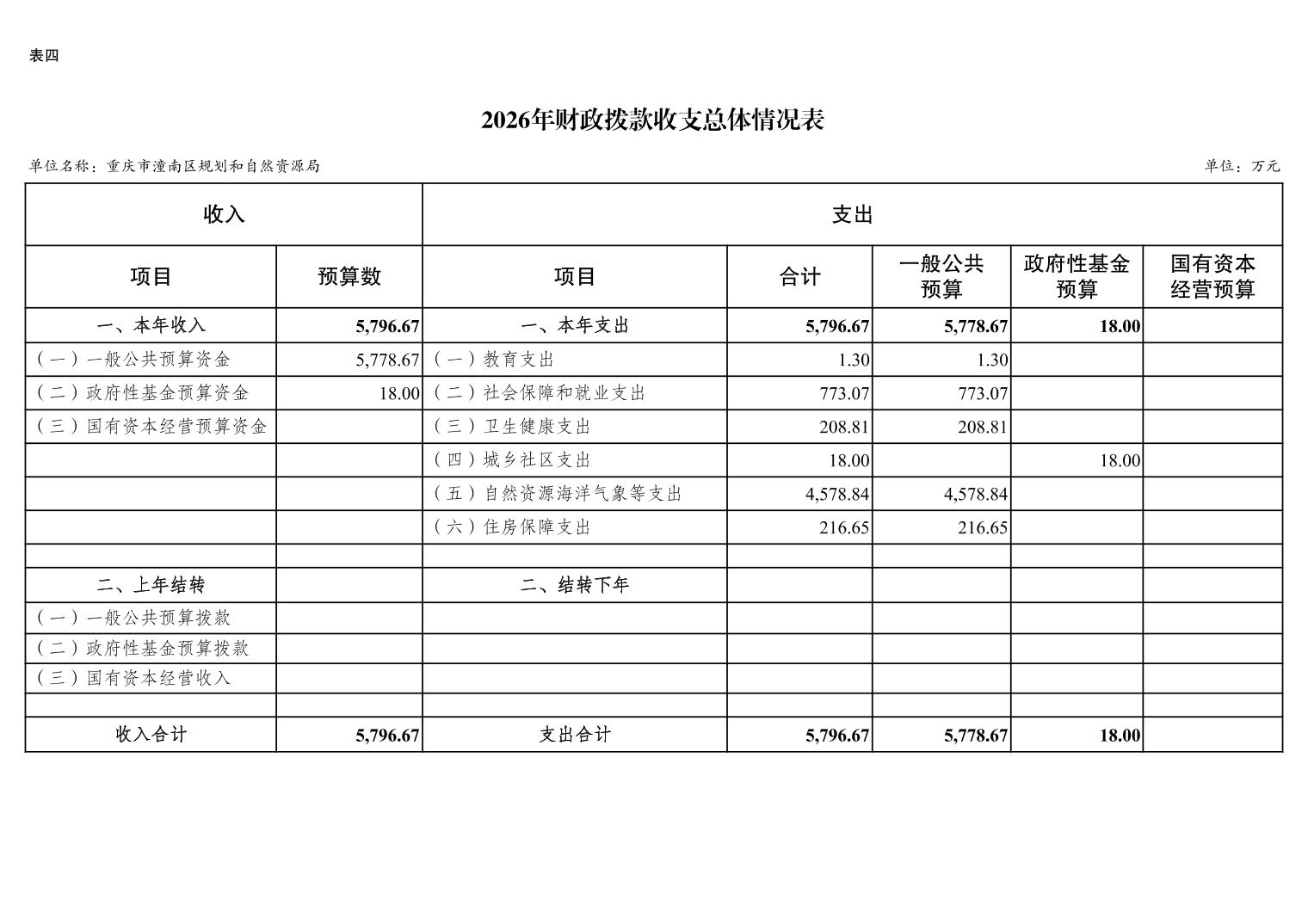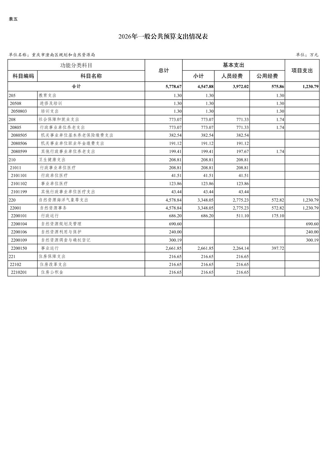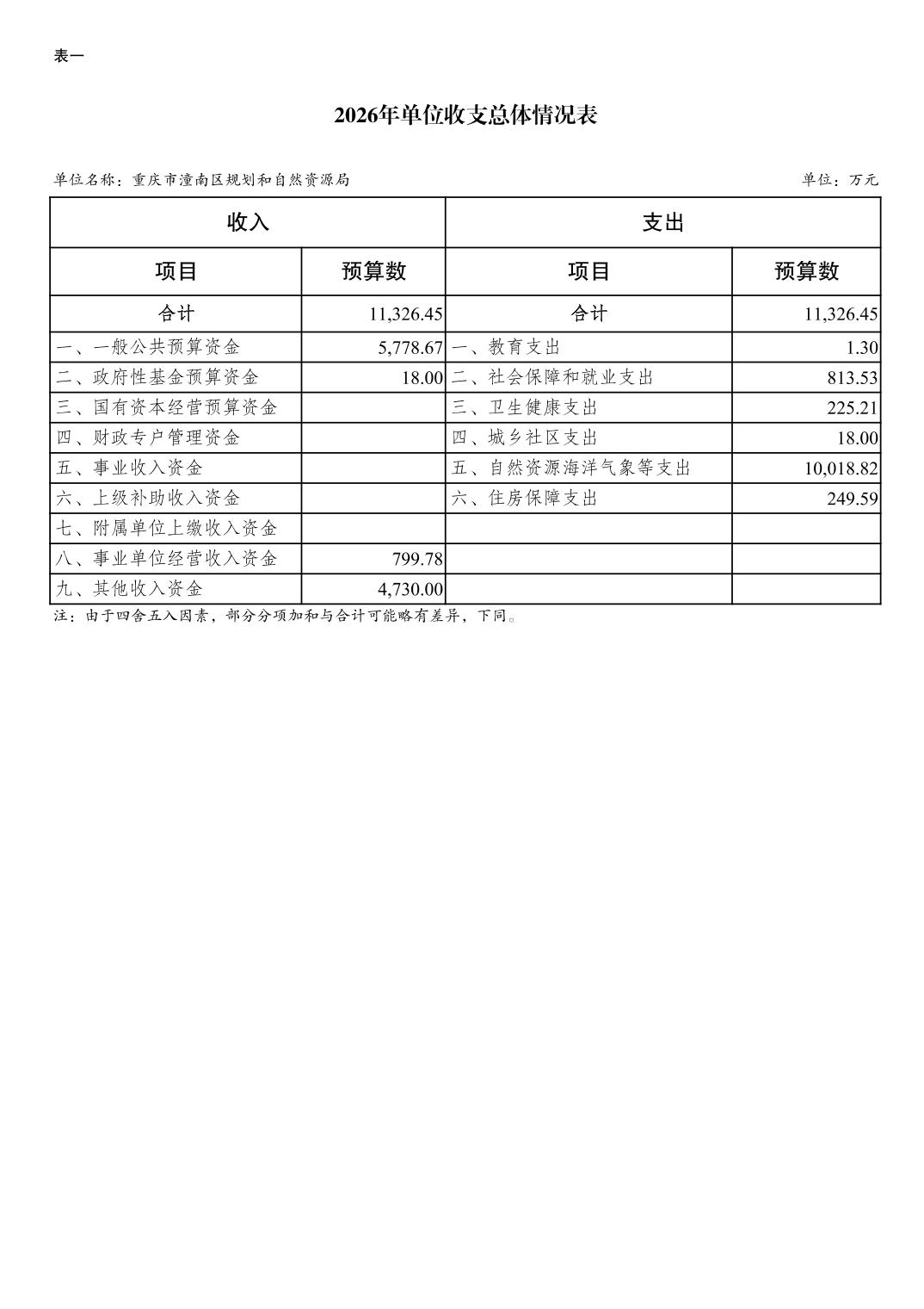 重庆市潼南区规划和自然资源局2026年预算情况说明