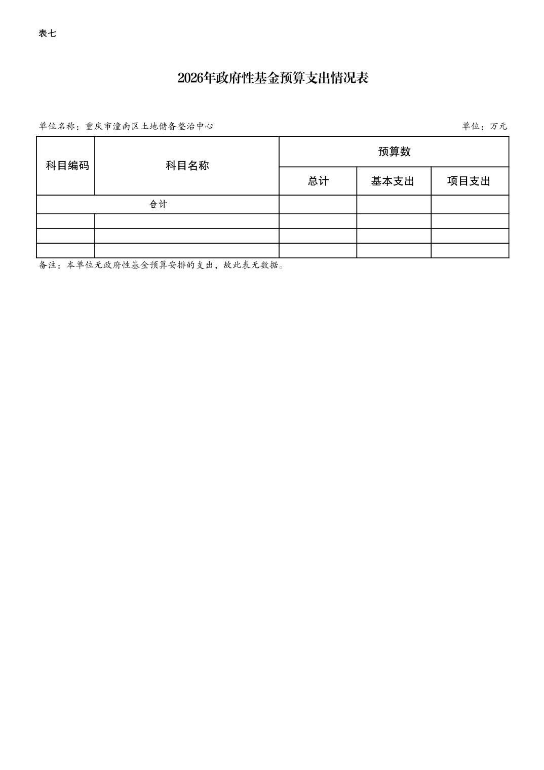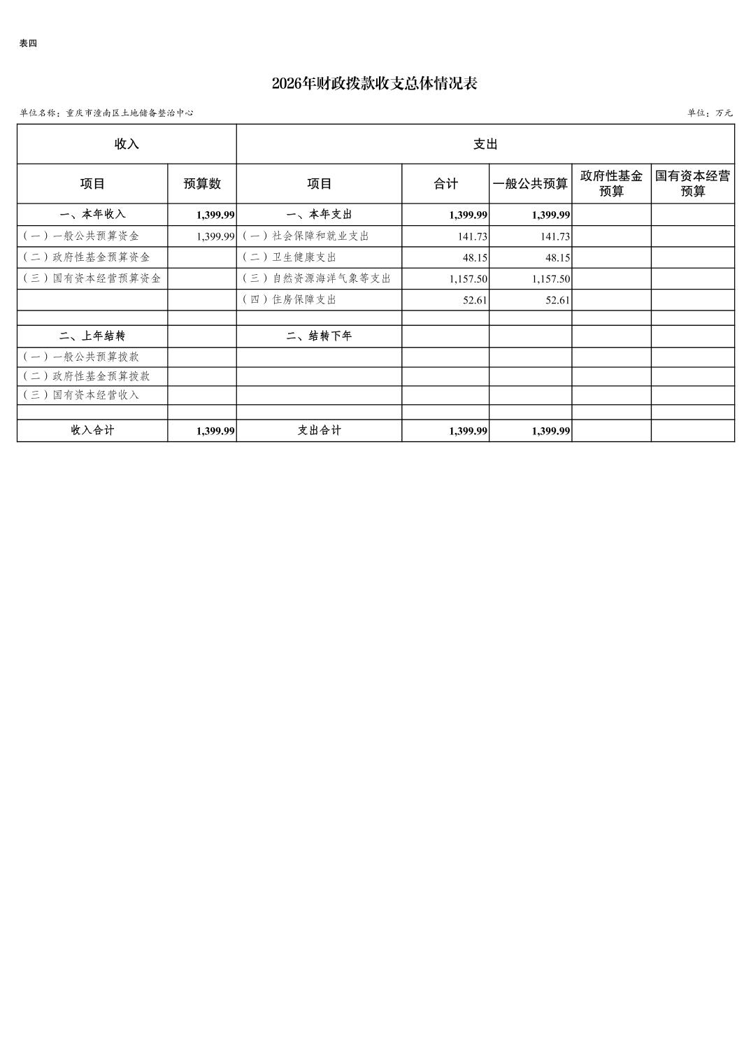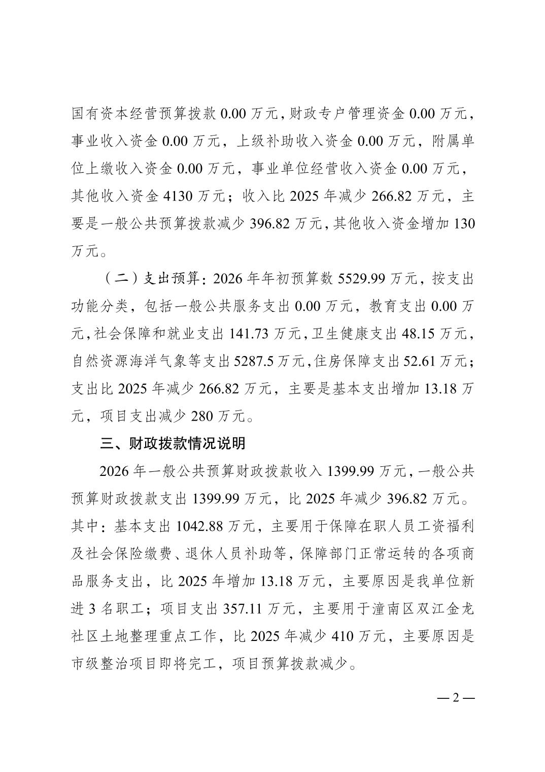 重庆市潼南区土地储备整治中心2026年预算情况说明