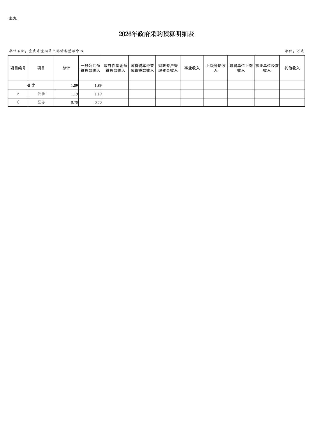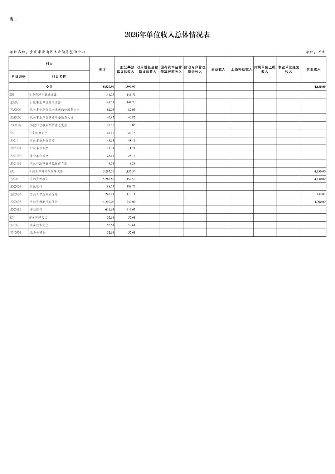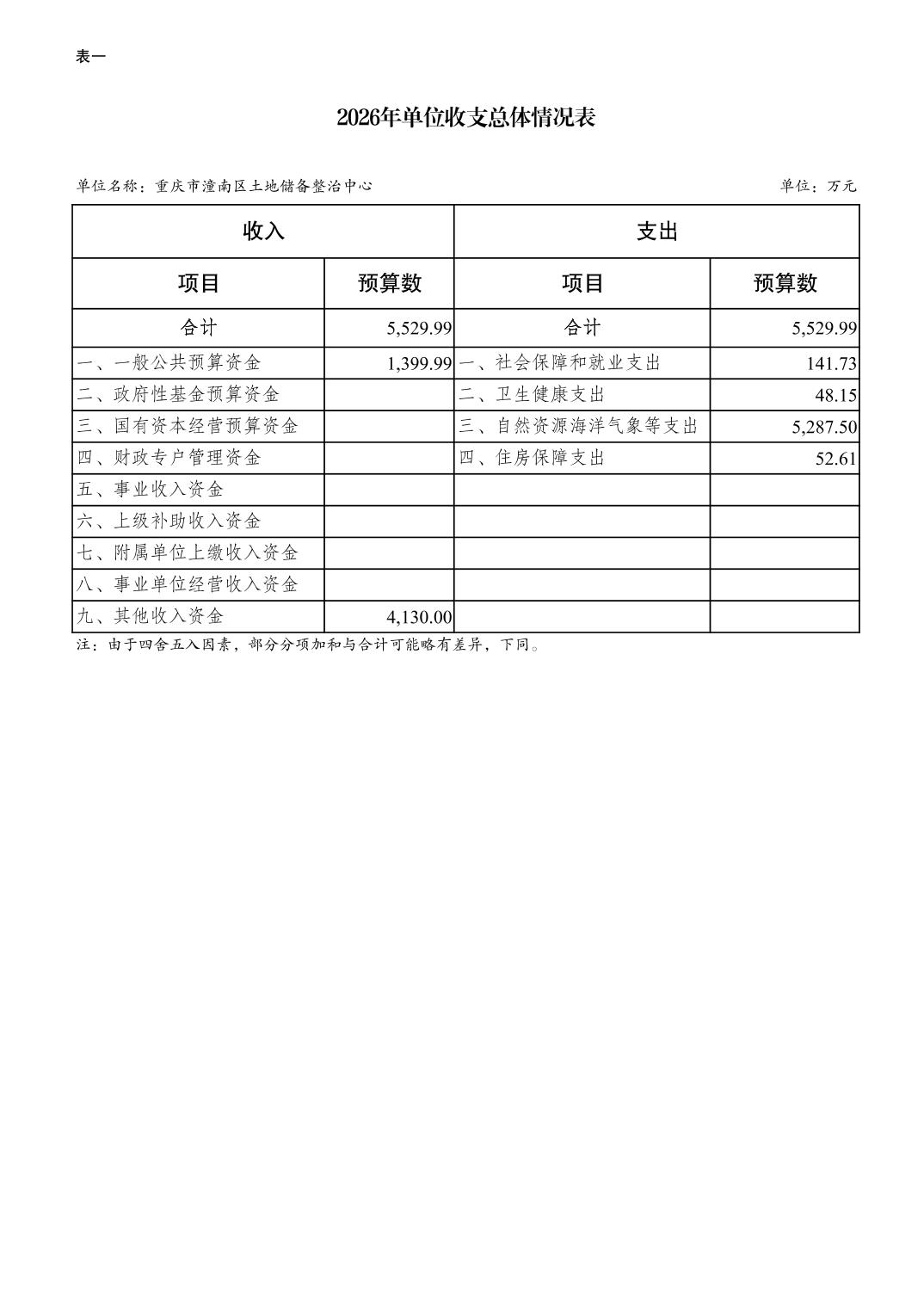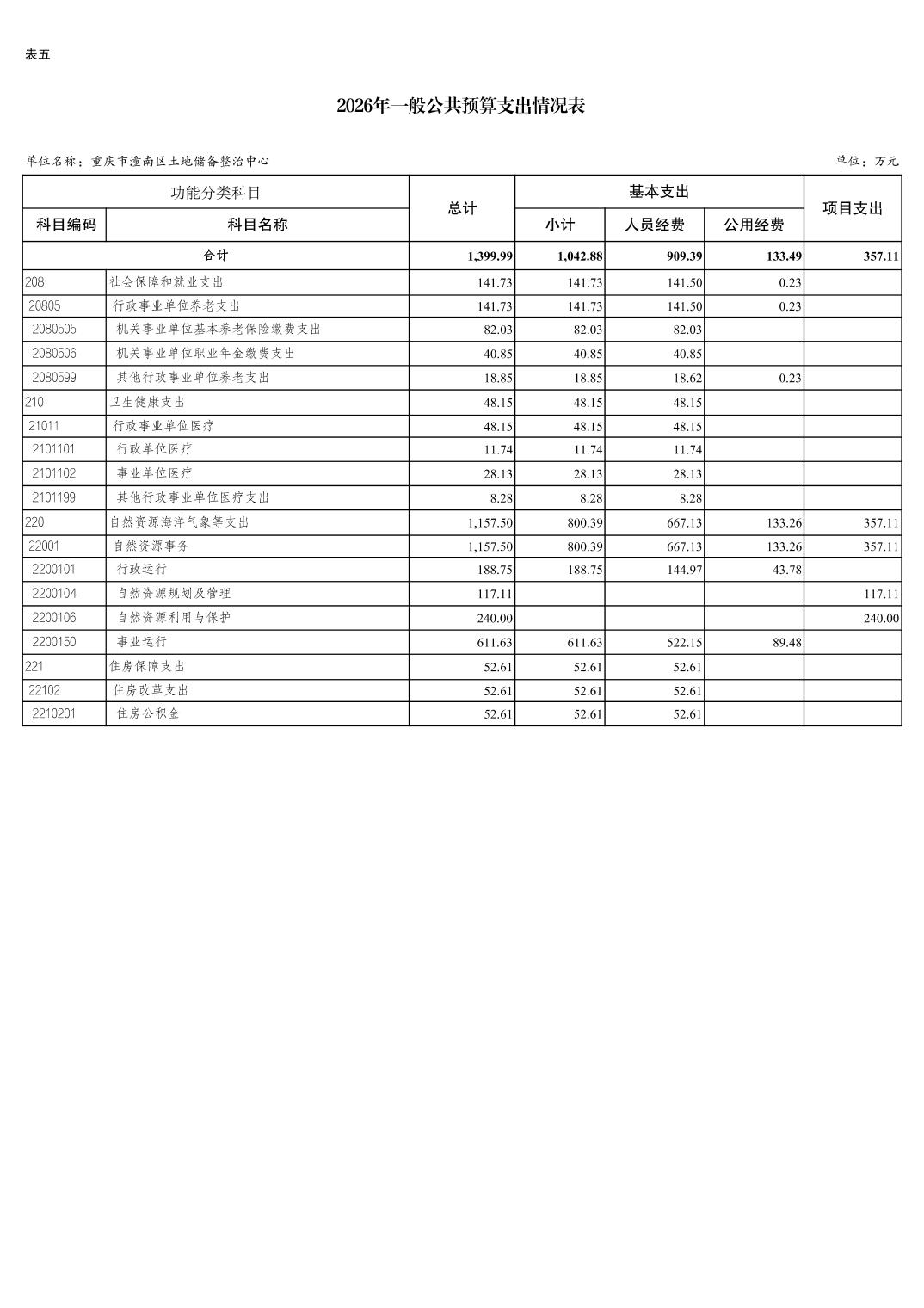 重庆市潼南区土地储备整治中心2026年预算情况说明