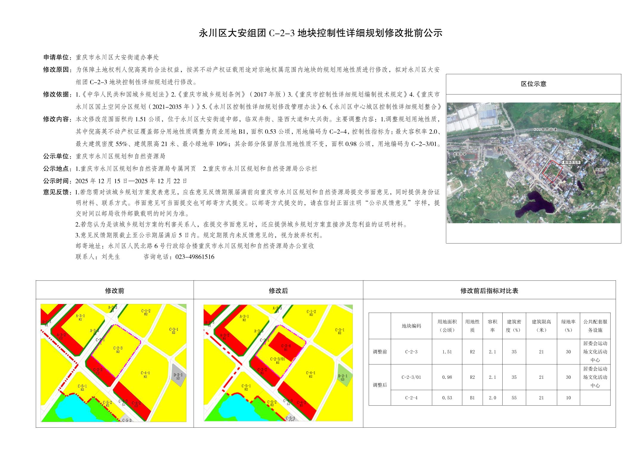 永川区大安组团C-2-3地块控制性详细规划修改批前公示.pdf