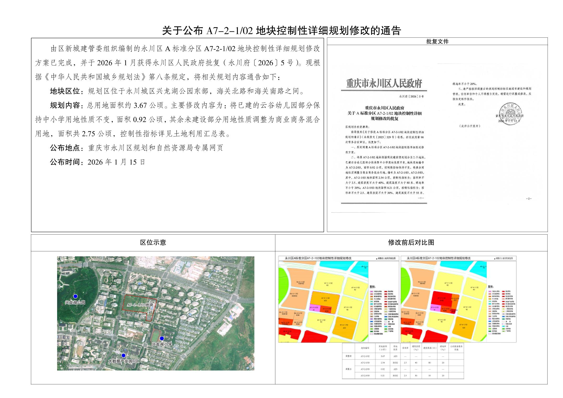 关于公布A7-2-102地块控制性详细规划修改的通告