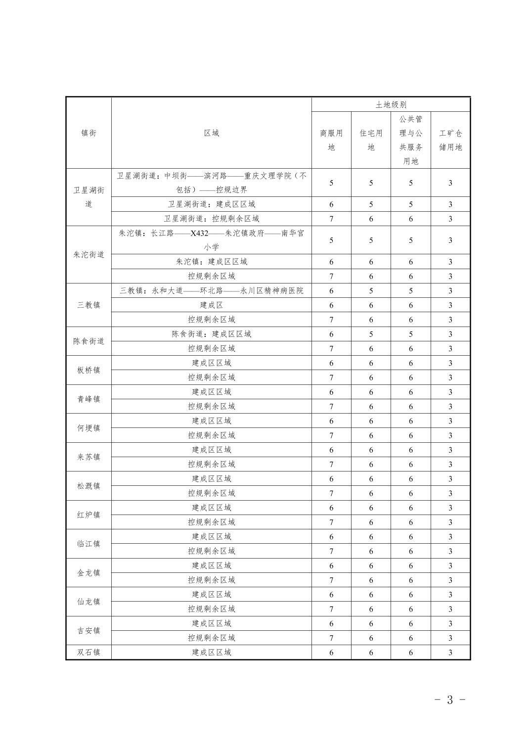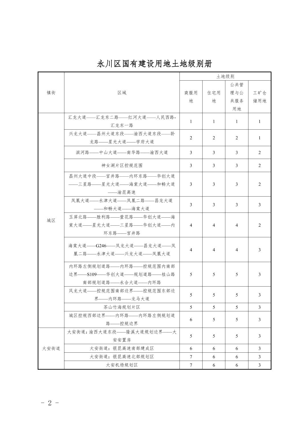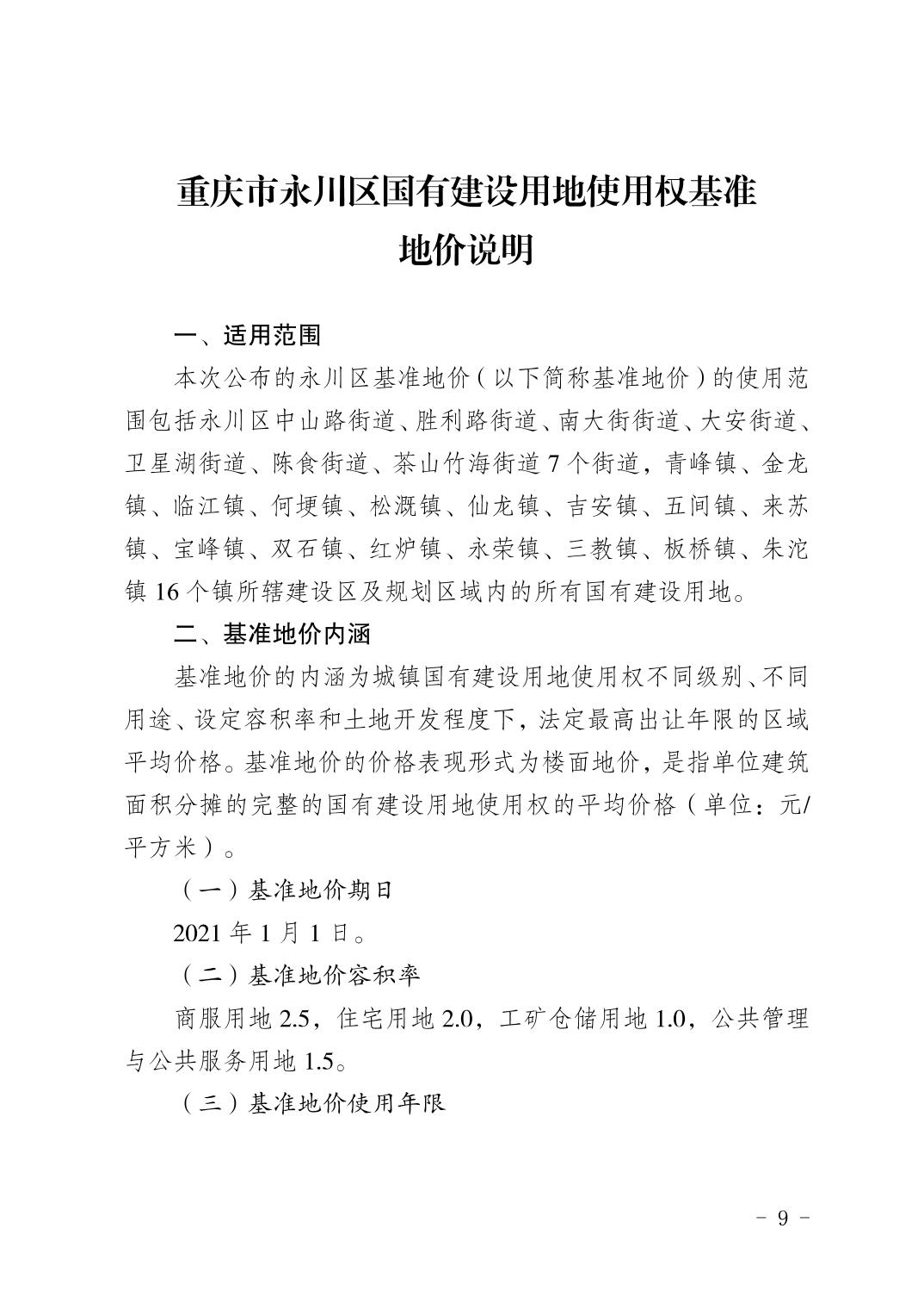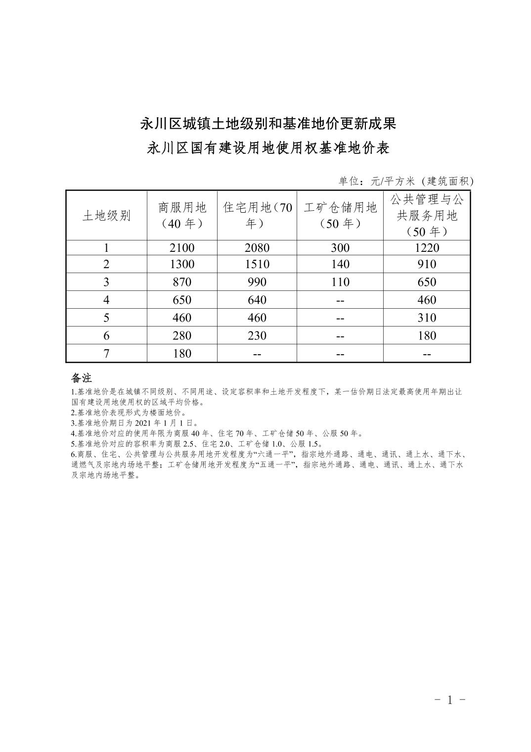 永川区城镇土地级别和基准地价信息公示