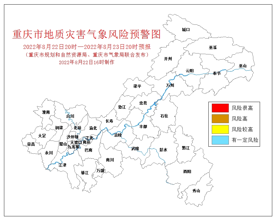 2022年8月22日重庆市地质灾害气象风险预警图-24小时预报