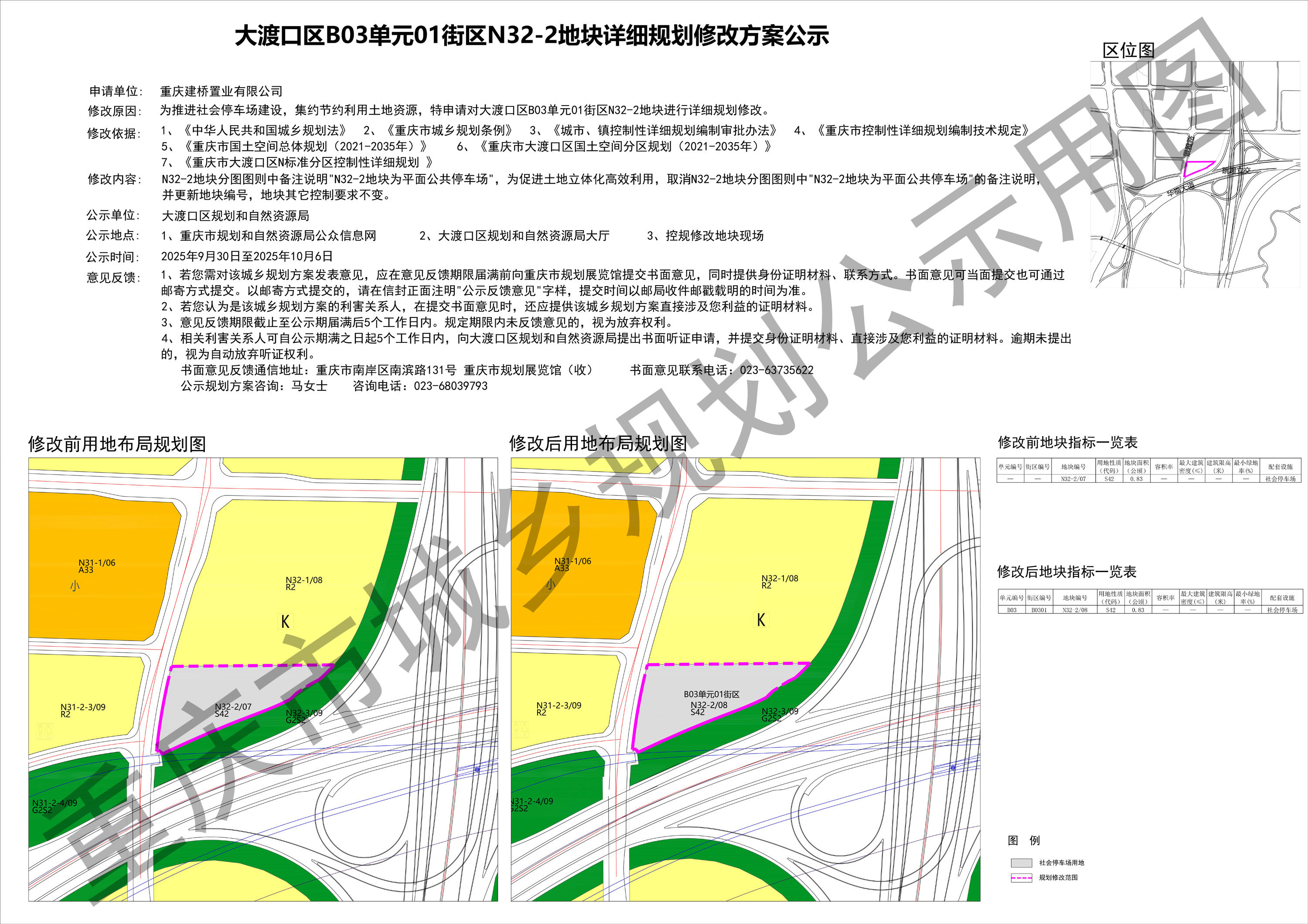 大渡口区B03单元01街区N32-2地块详细规划修改方案公示
