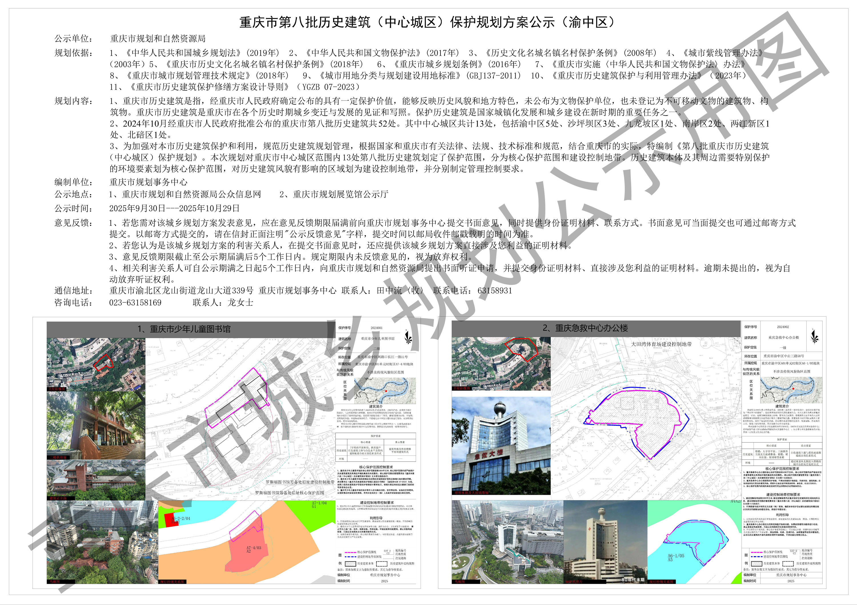 重庆市第八批历史建筑(中心城区)保护规划方案公示
