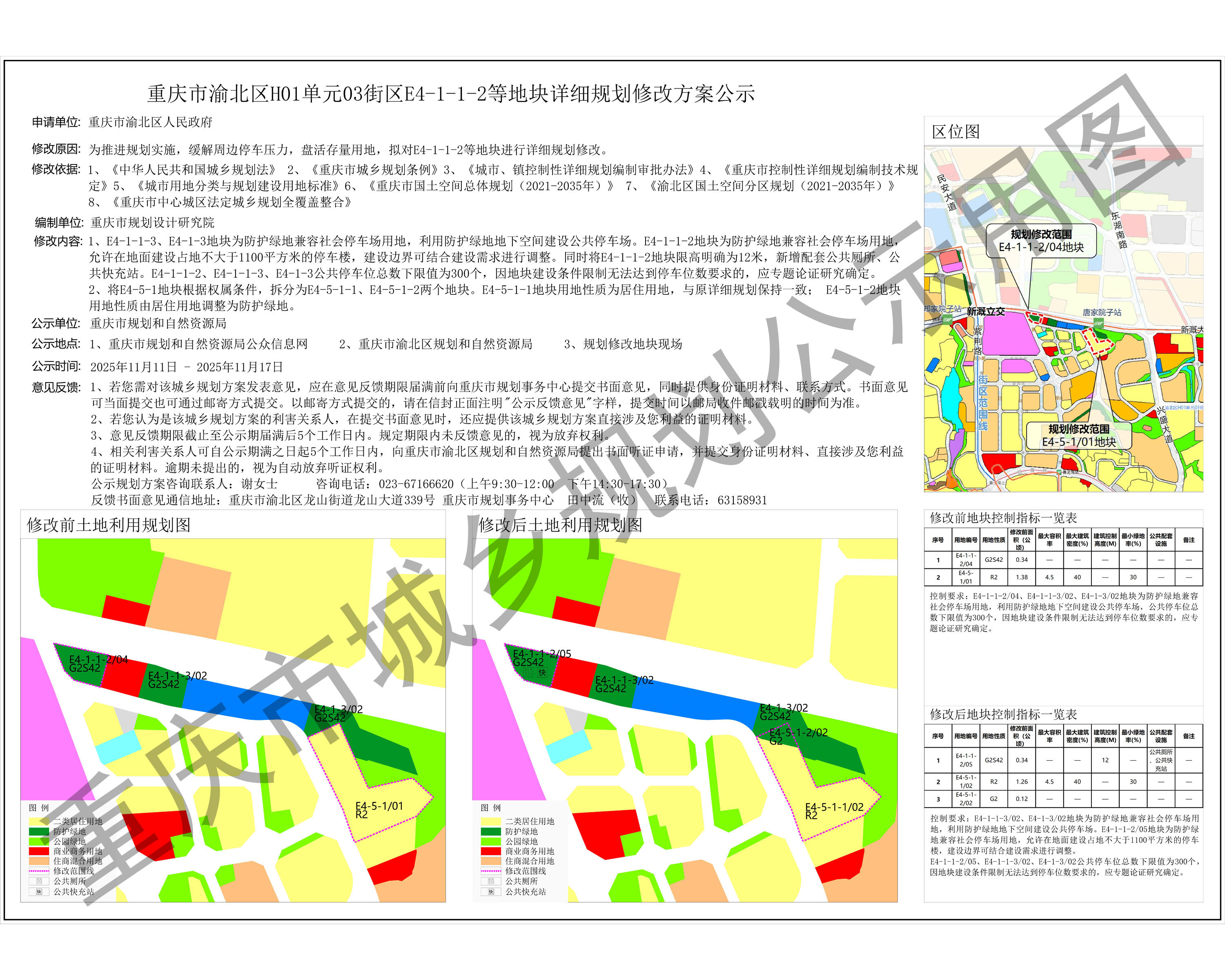 渝北区H01单元03街区E4-1-1-2等地块详细规划修改方案公示