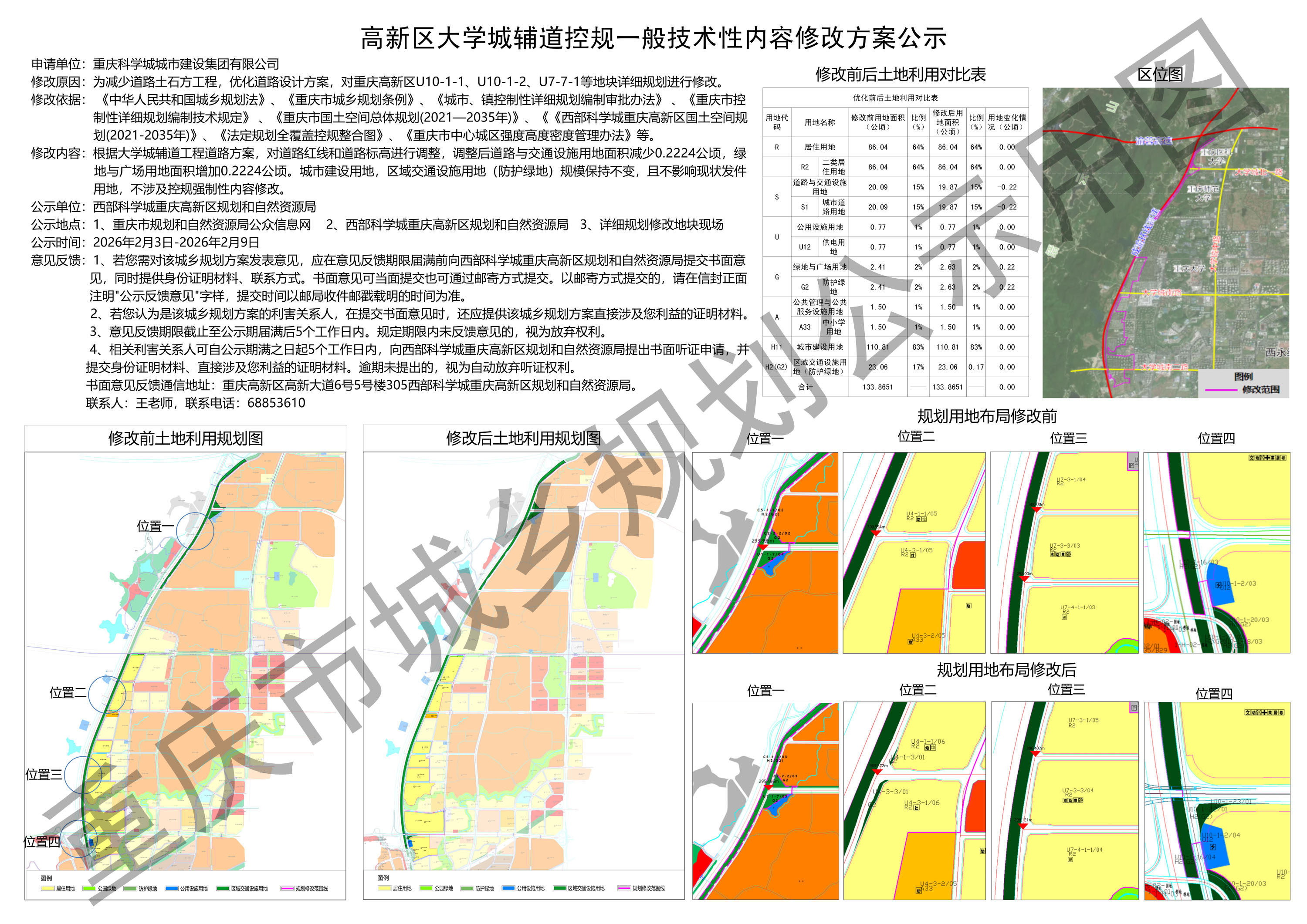 高新区大学城辅道控规一般技术性内容修改方案公示