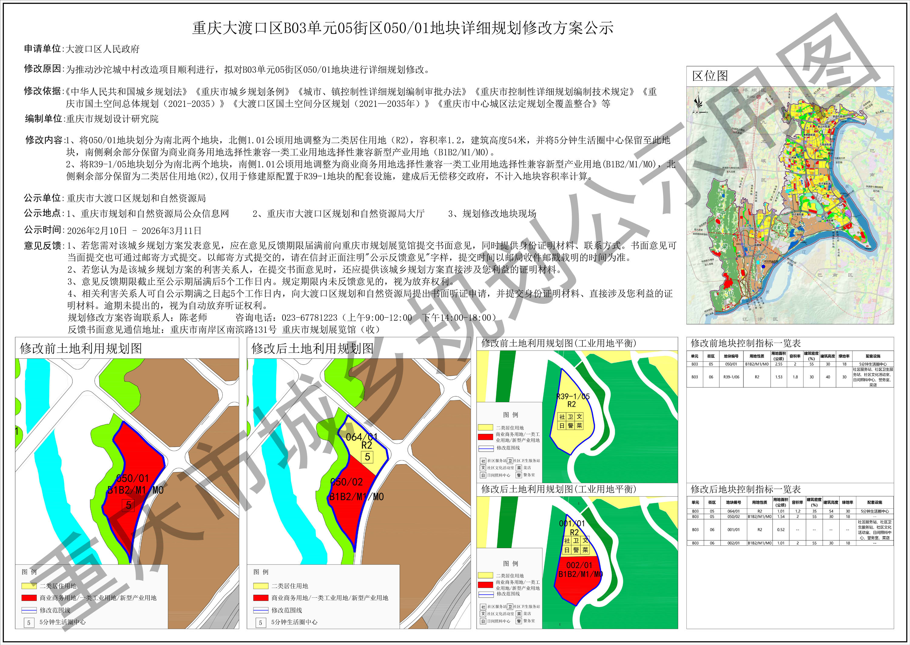 重庆大渡口区B03单元05街区050/01地块详细规划修改方案公示