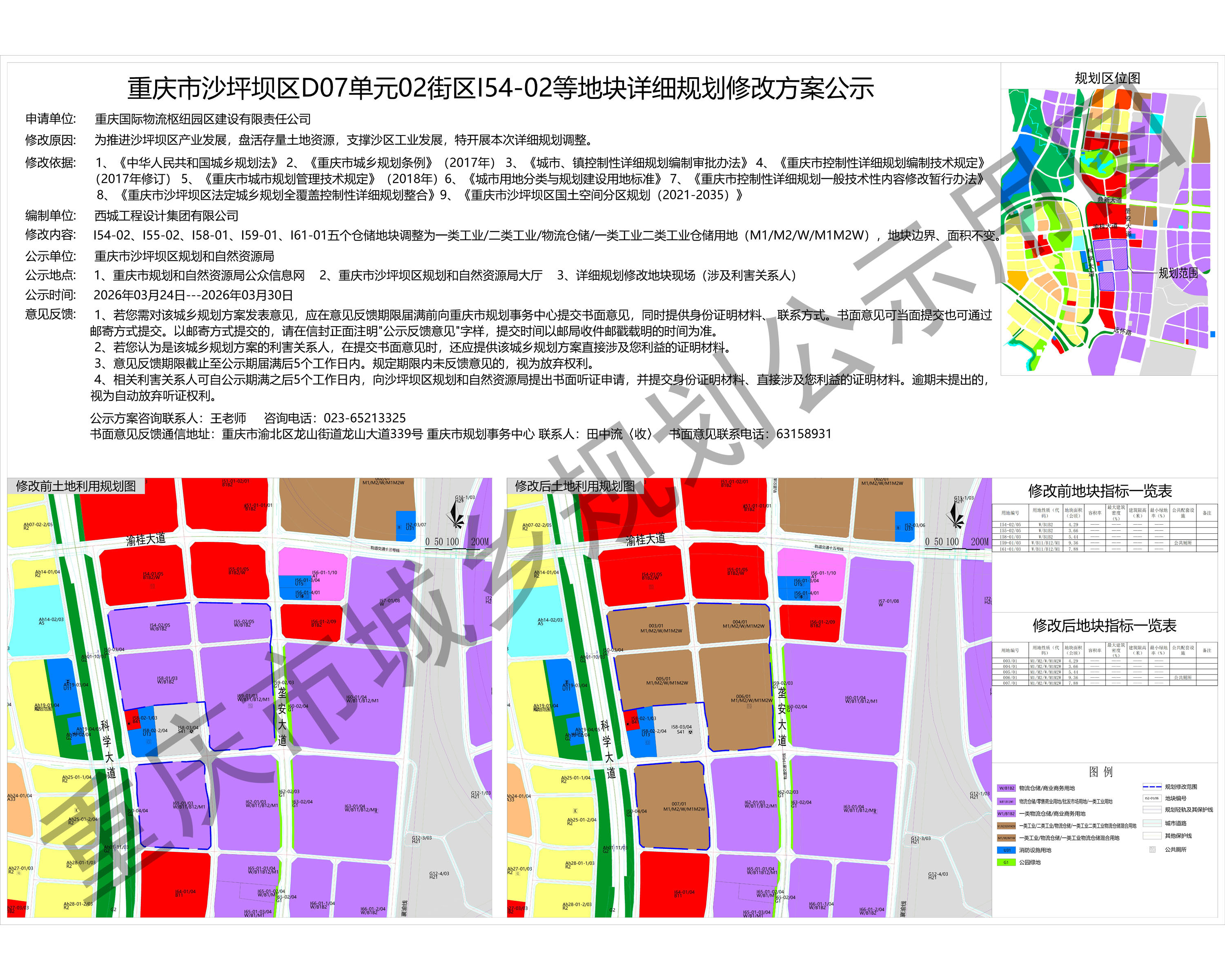 重庆市沙坪坝区D07单元02街区I54-02等地块详细规划修改方案公示
