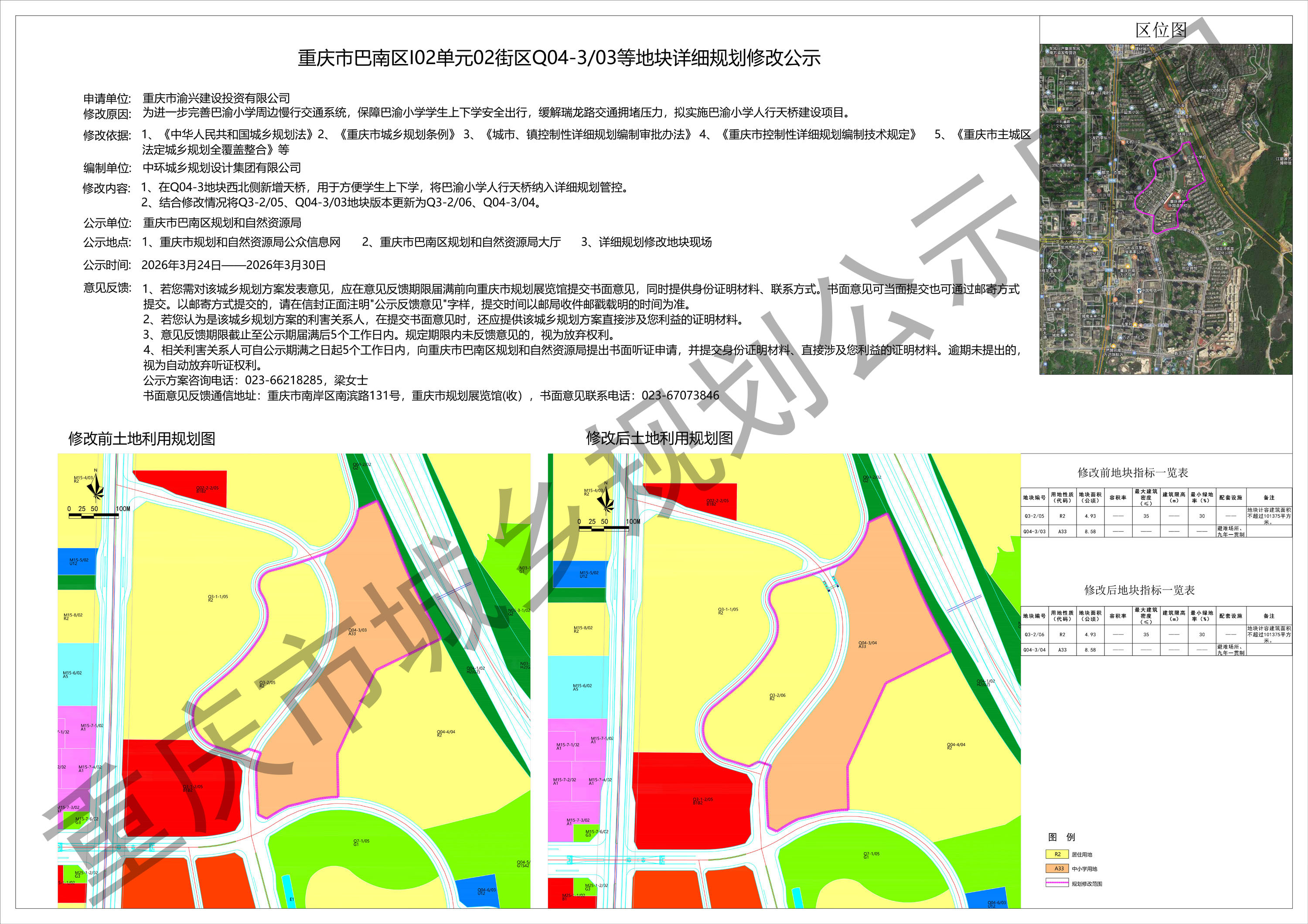 重庆市巴南区I02单元02街区Q04-3/03等地块详细规划修改公示