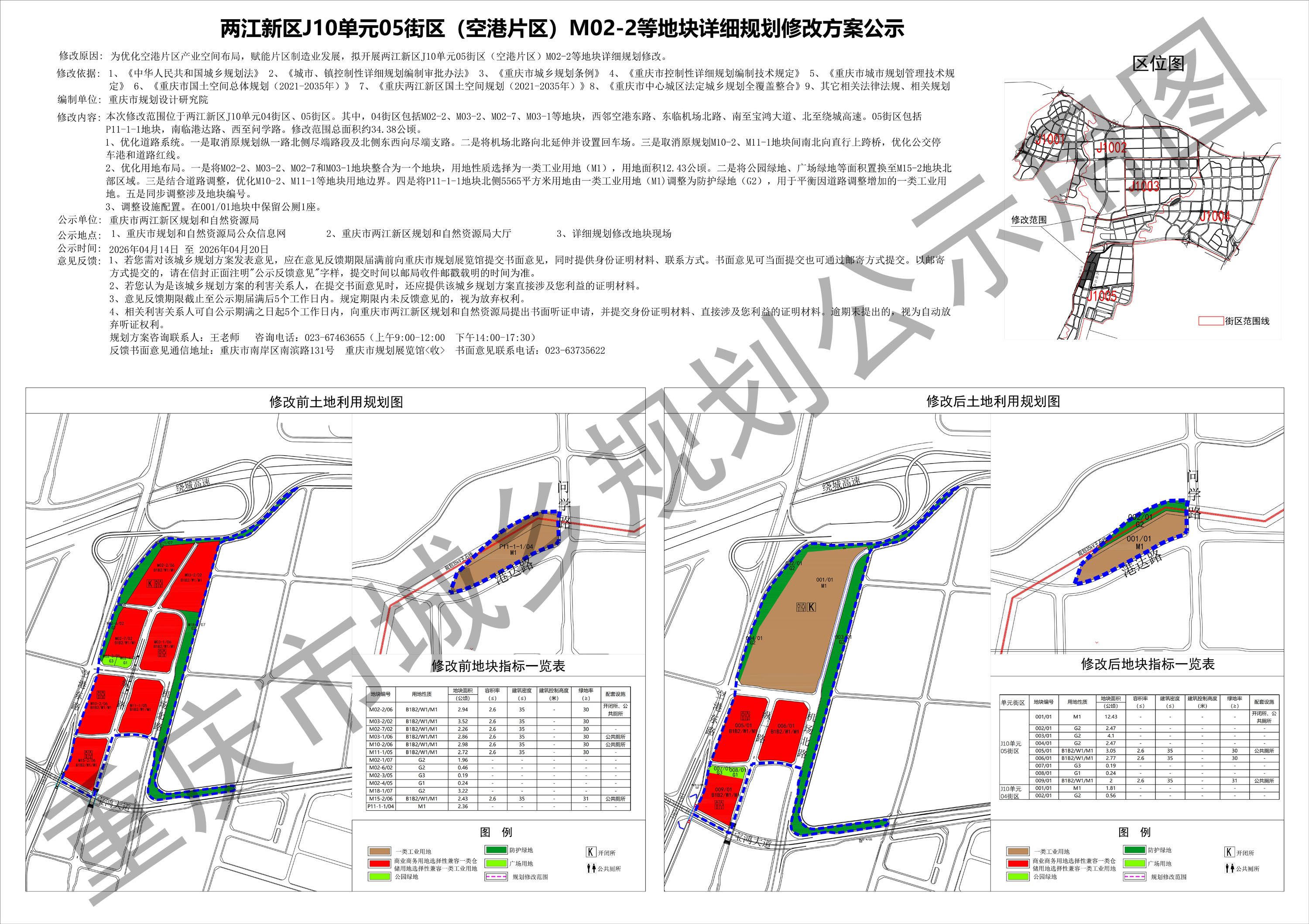 两江新区J10单元05街区(空港片区)M02-2等地块详细规划修改方案公示