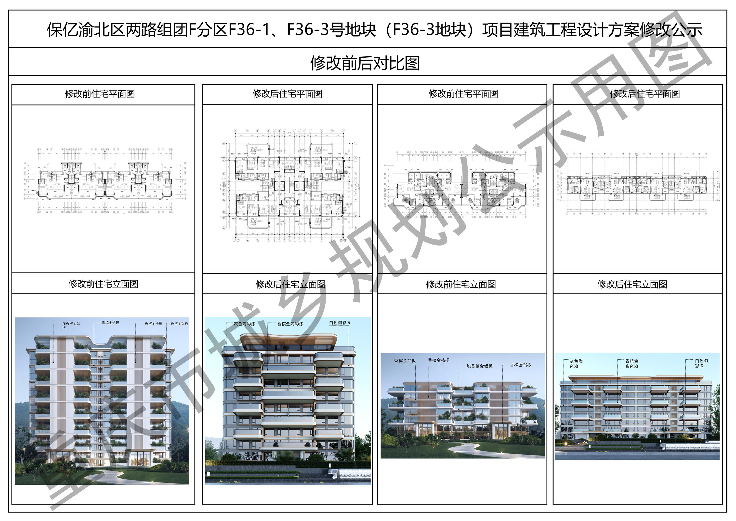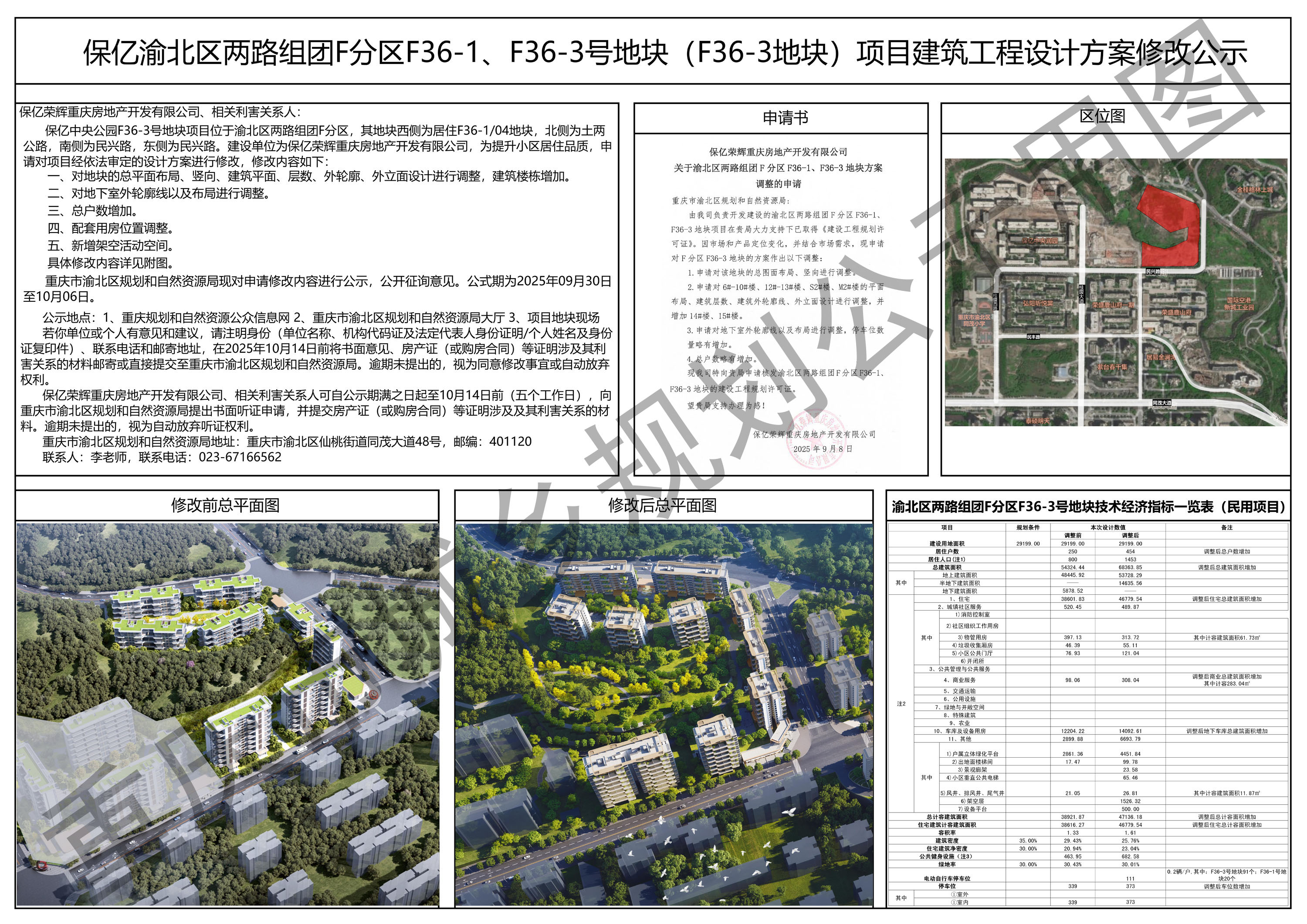 保亿渝北区两路组团F分区F36-1、F36-3号地块(F36-3地块)项目建筑工程设计方案修改公示