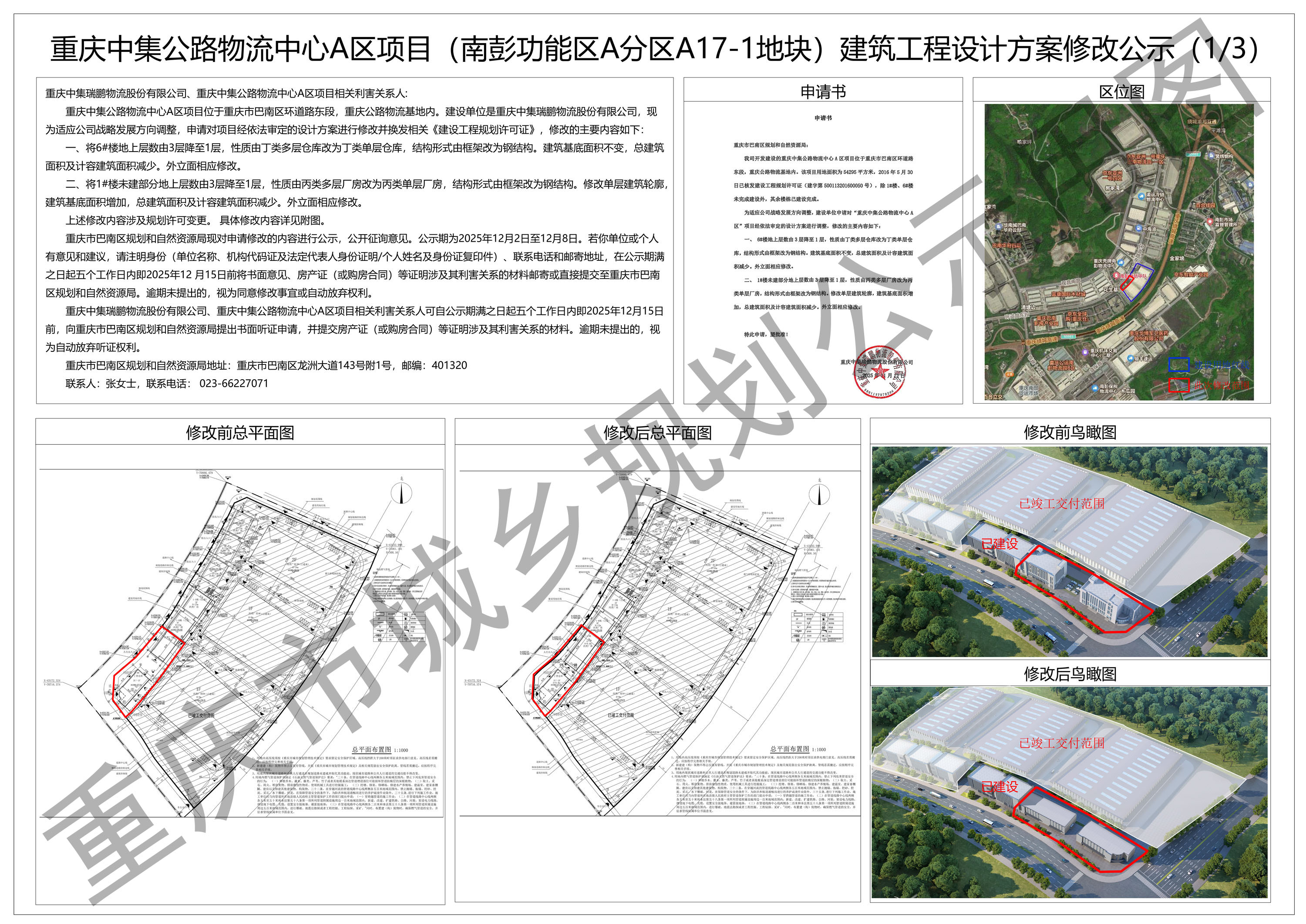 重庆中集公路物流中心A区项目(南彭功能区A分区A17-1地块)建筑工程设计方案修改公示