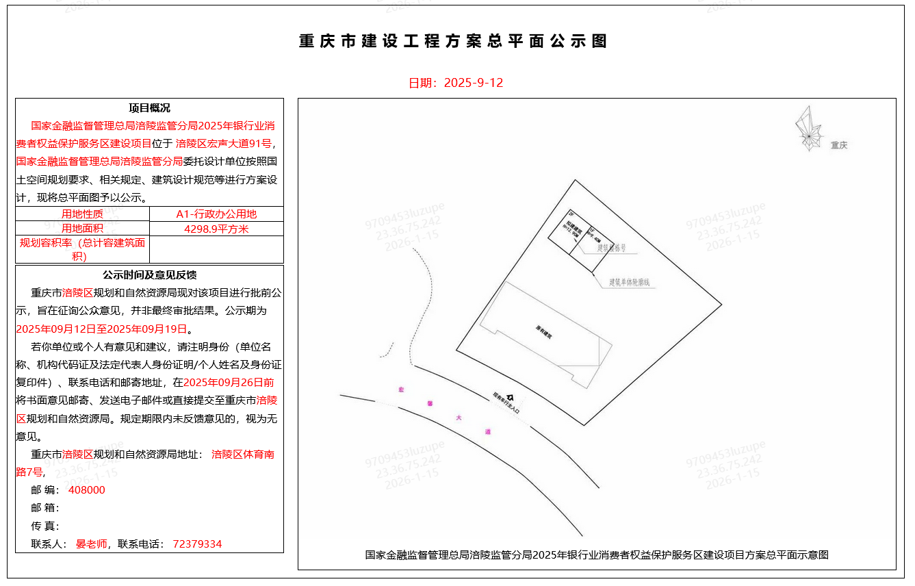 国家金融监督管理总局涪陵监管分局2025年银行业消费者权益保护服务区建设项目