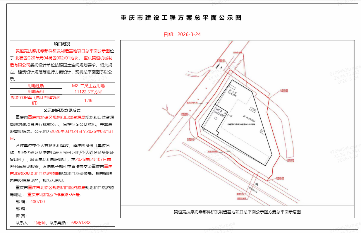 翼恒竞技摩托零部件研发制造基地项目总平面公示图