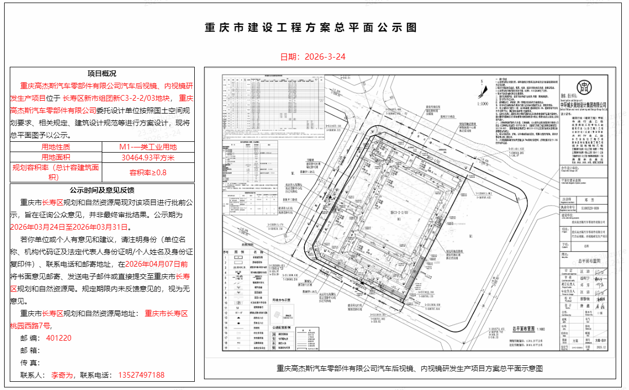 重庆高杰斯汽车零部件有限公司汽车后视镜、内视镜研发生产项目
