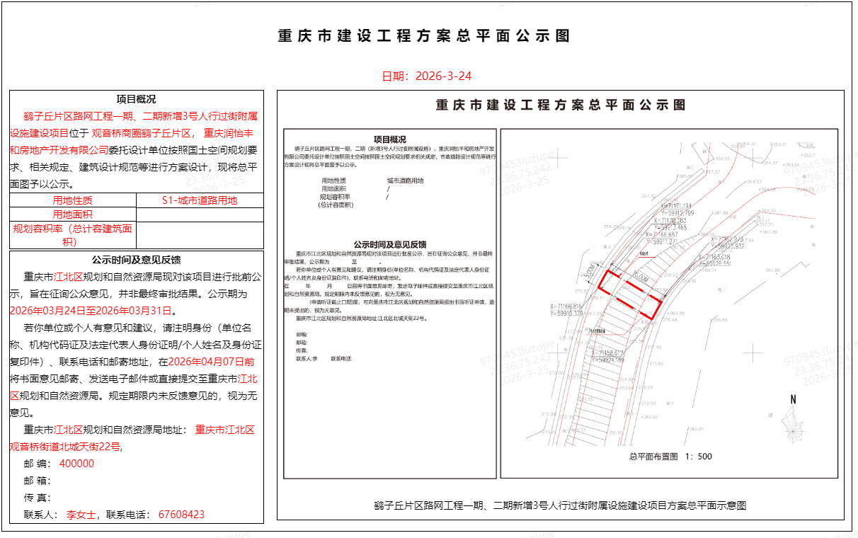 鹞子丘片区路网工程一期、二期新增3号人行过街附属设施建设项目