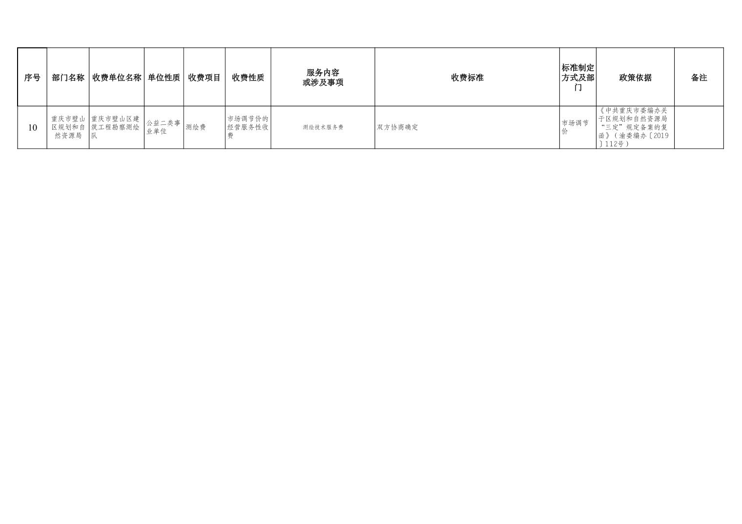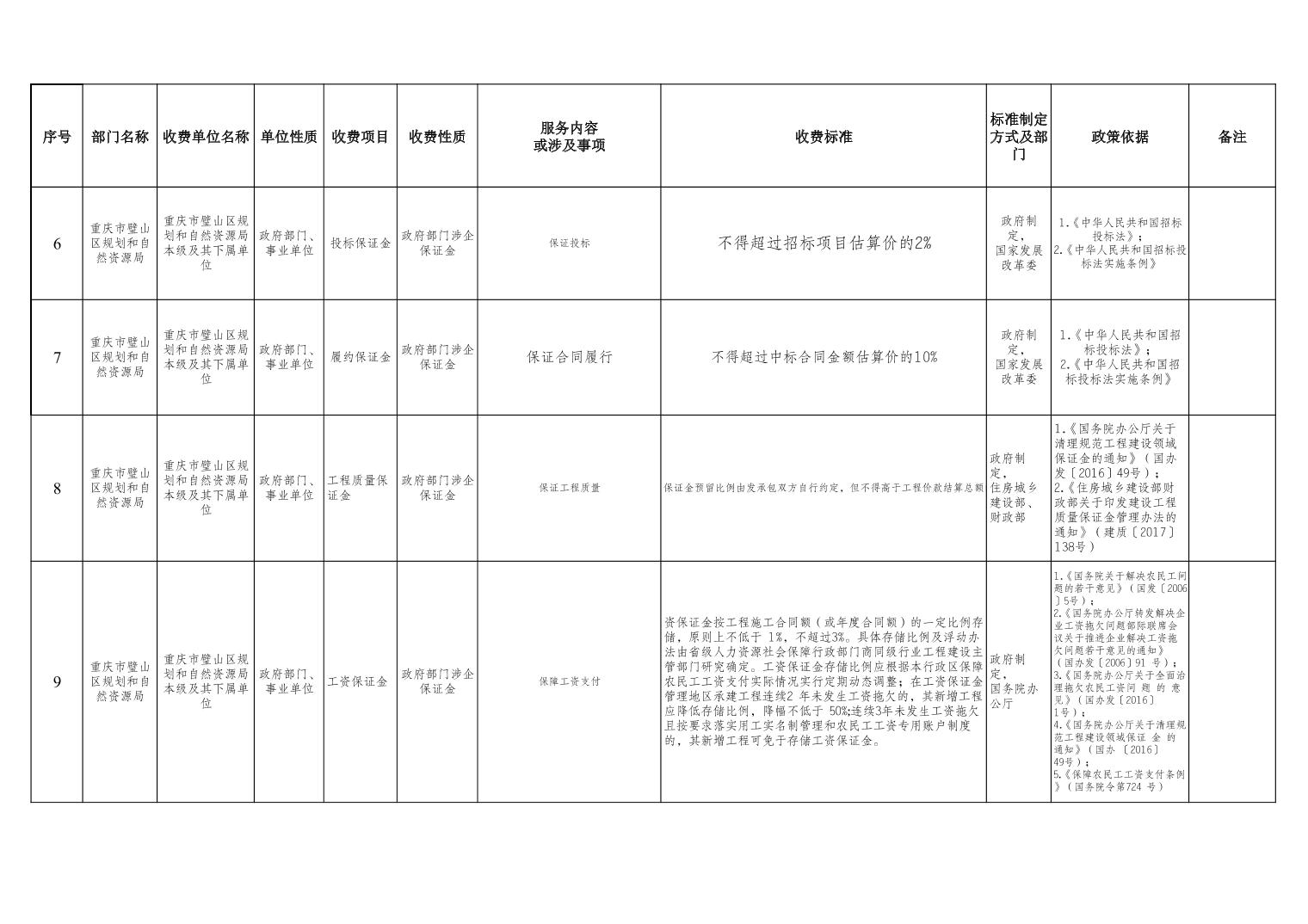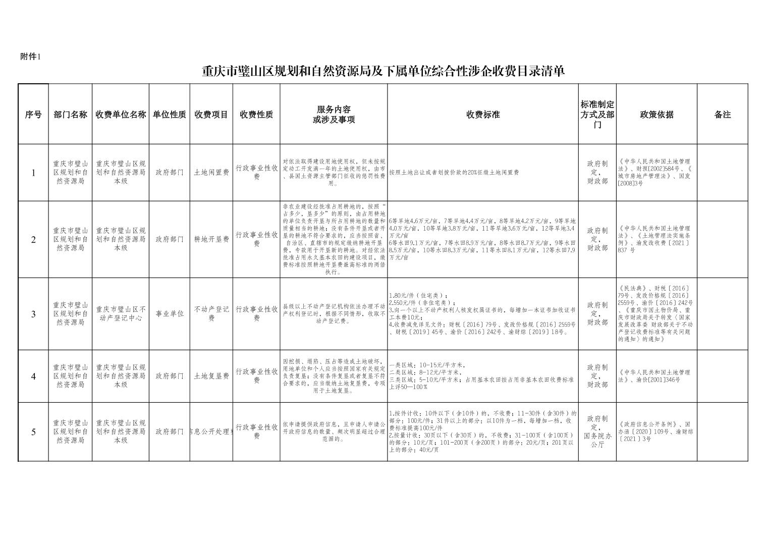 璧山区规划和自然资源局及下属单位综合性涉企收费目录清单