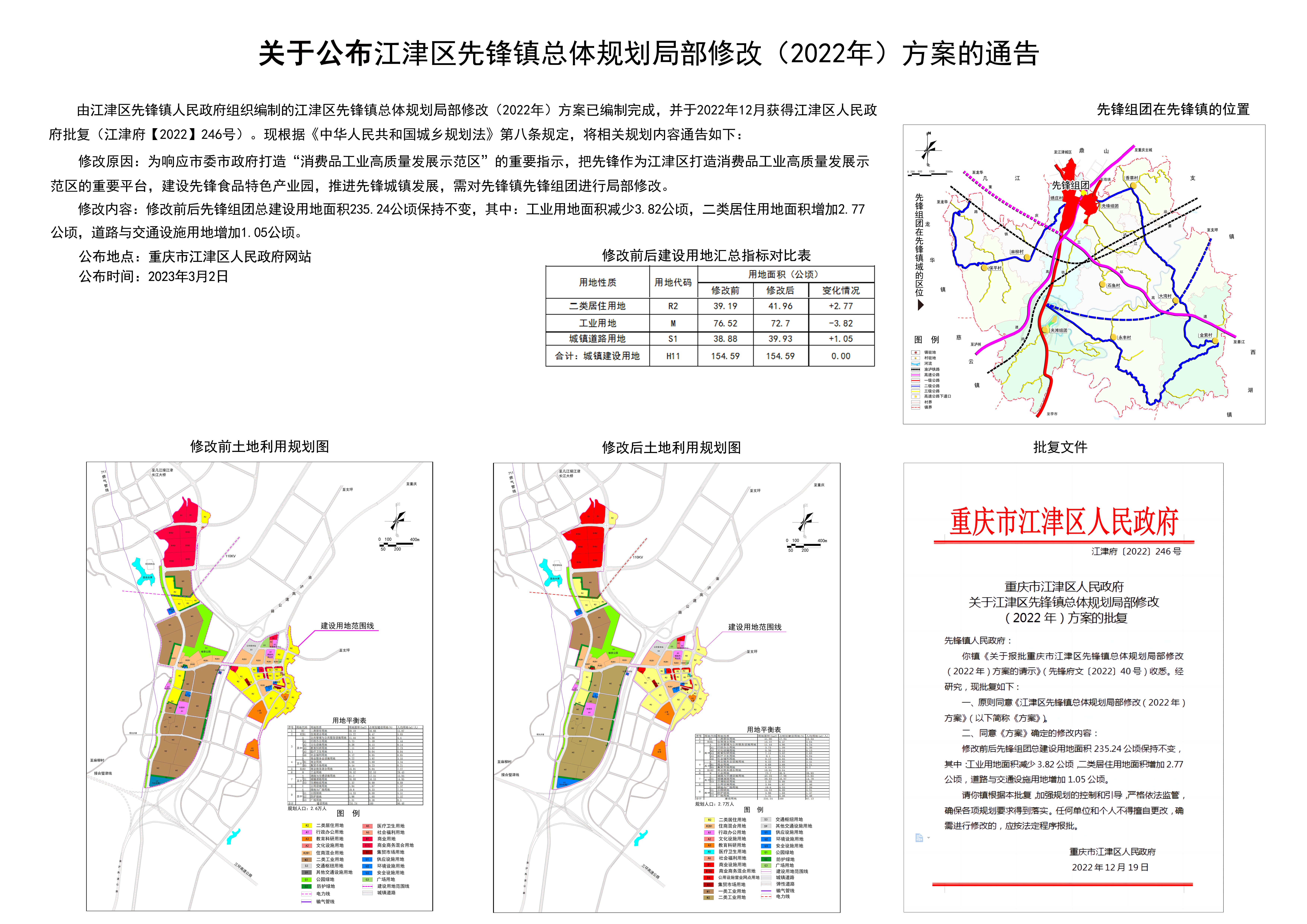 重庆市江津区先锋镇总体规划局部修改(2022年)方案的通告