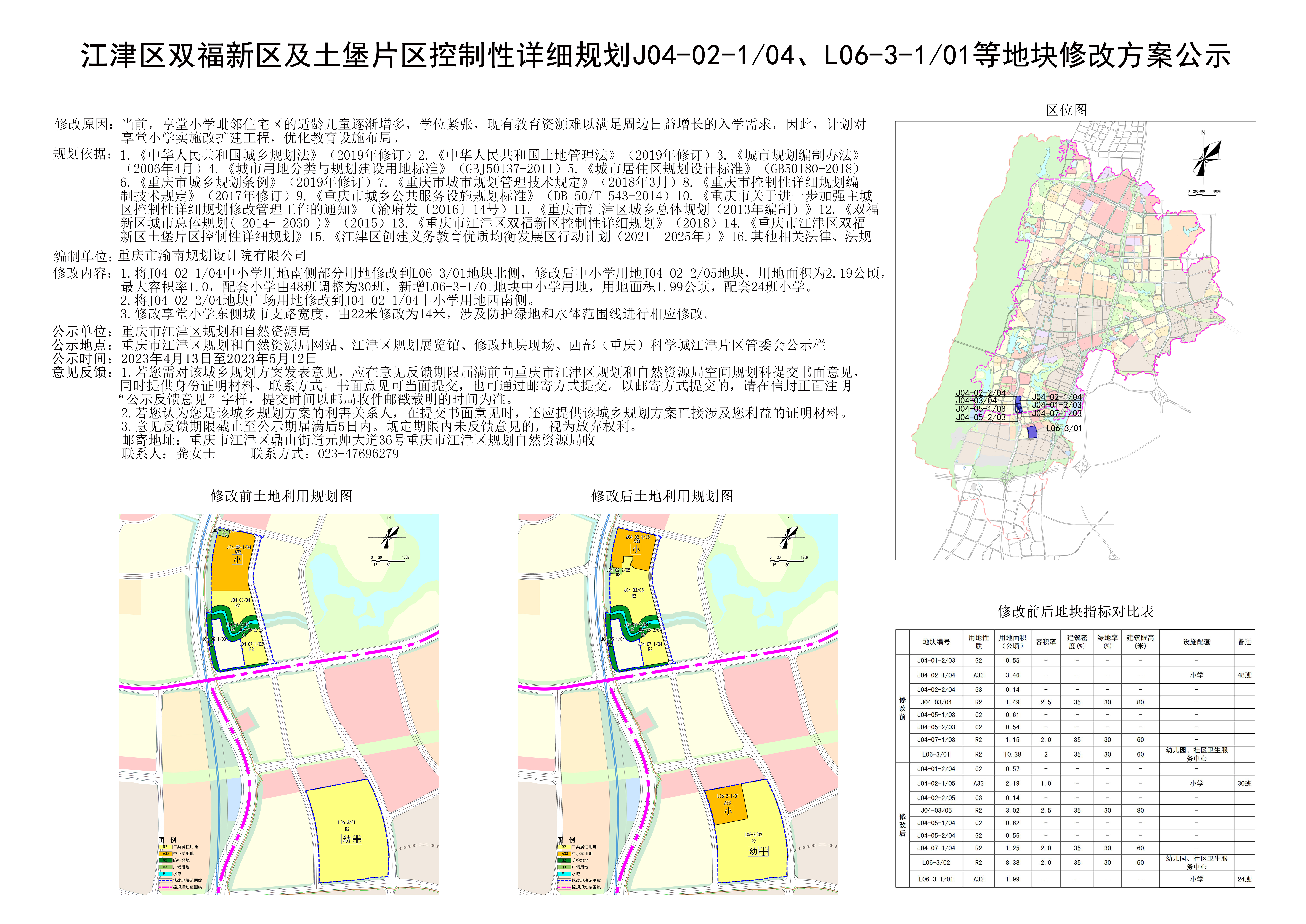 重庆市江津区双福新区及土堡片区控制性详细规划J04-02-104、L06-301等地块修改方案公示