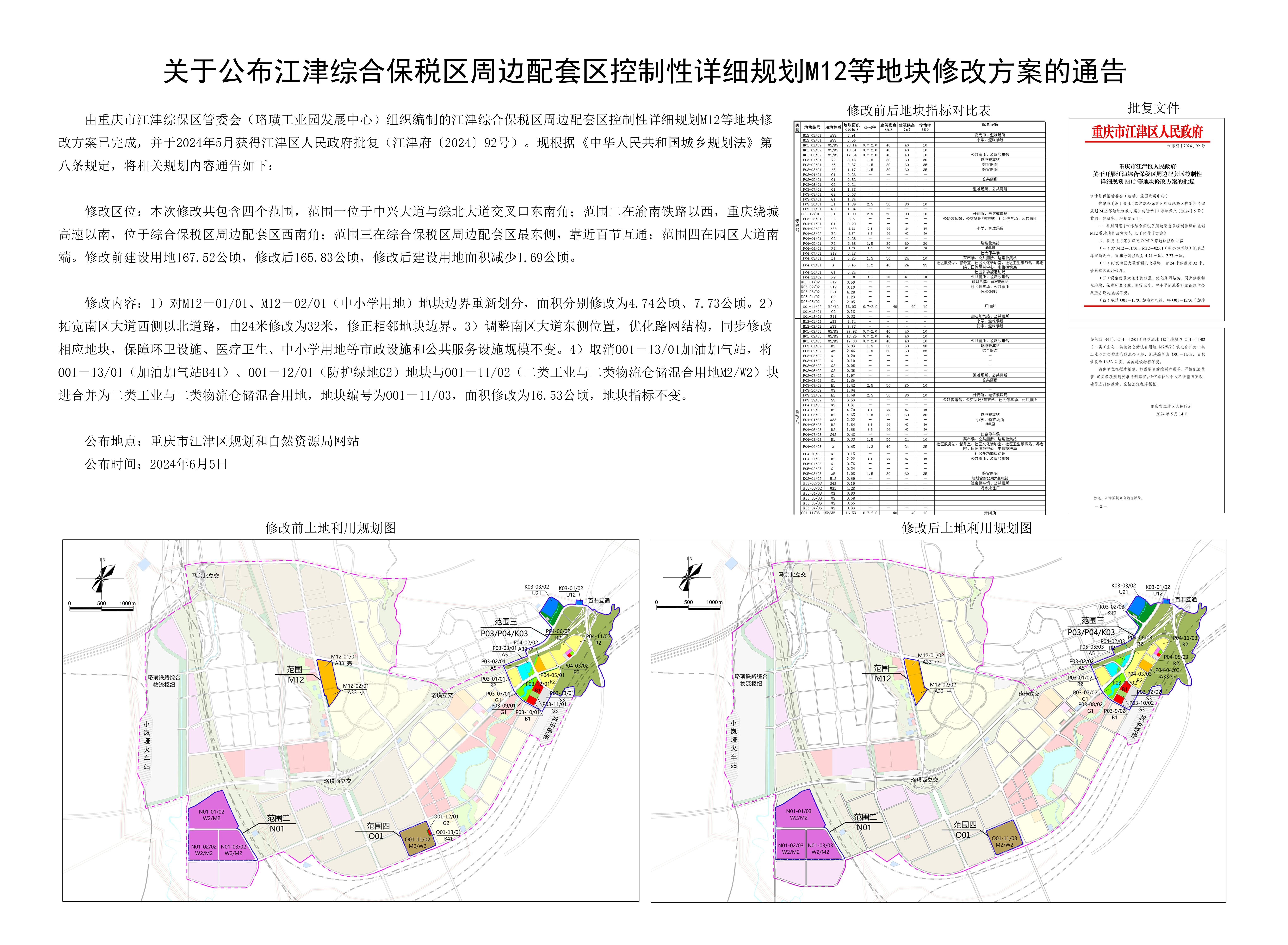 关于公布江津区综合保税区周边配套区控制性详细规划M12等地块修改方案的通告