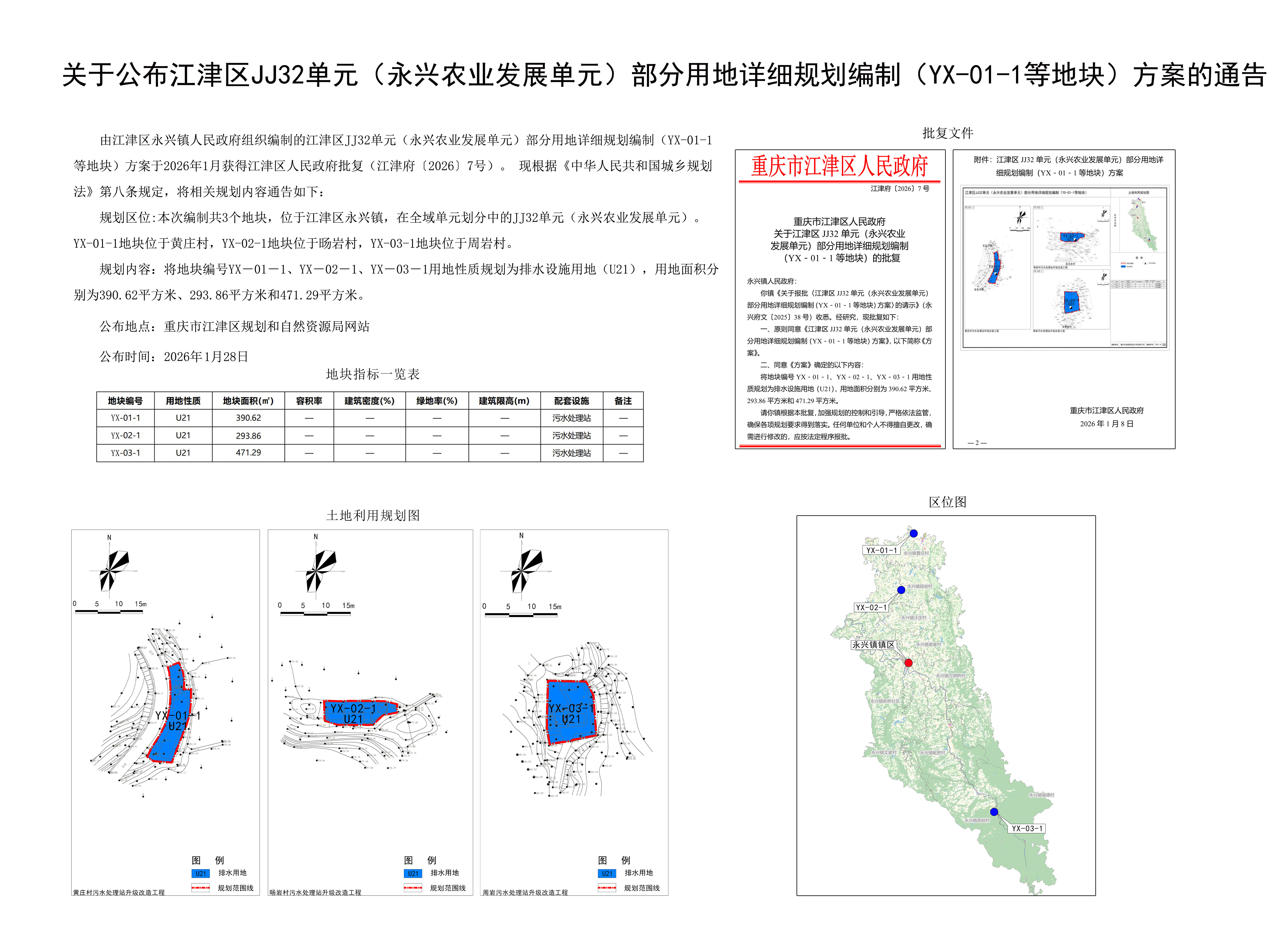 关于公布江津区JJ32单元(永兴农业发展单元)部分用地详细规划编制(YX-01-1地块)方案的通告