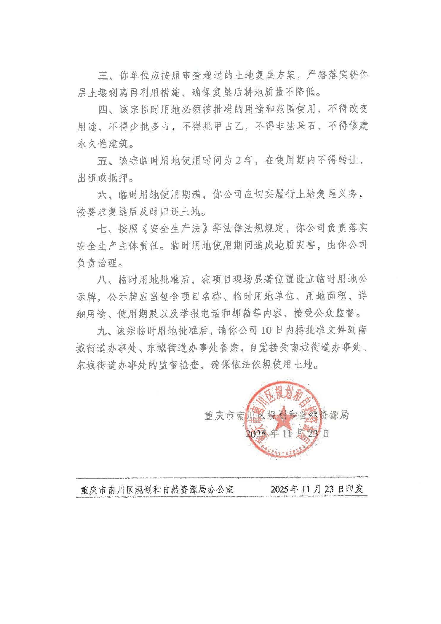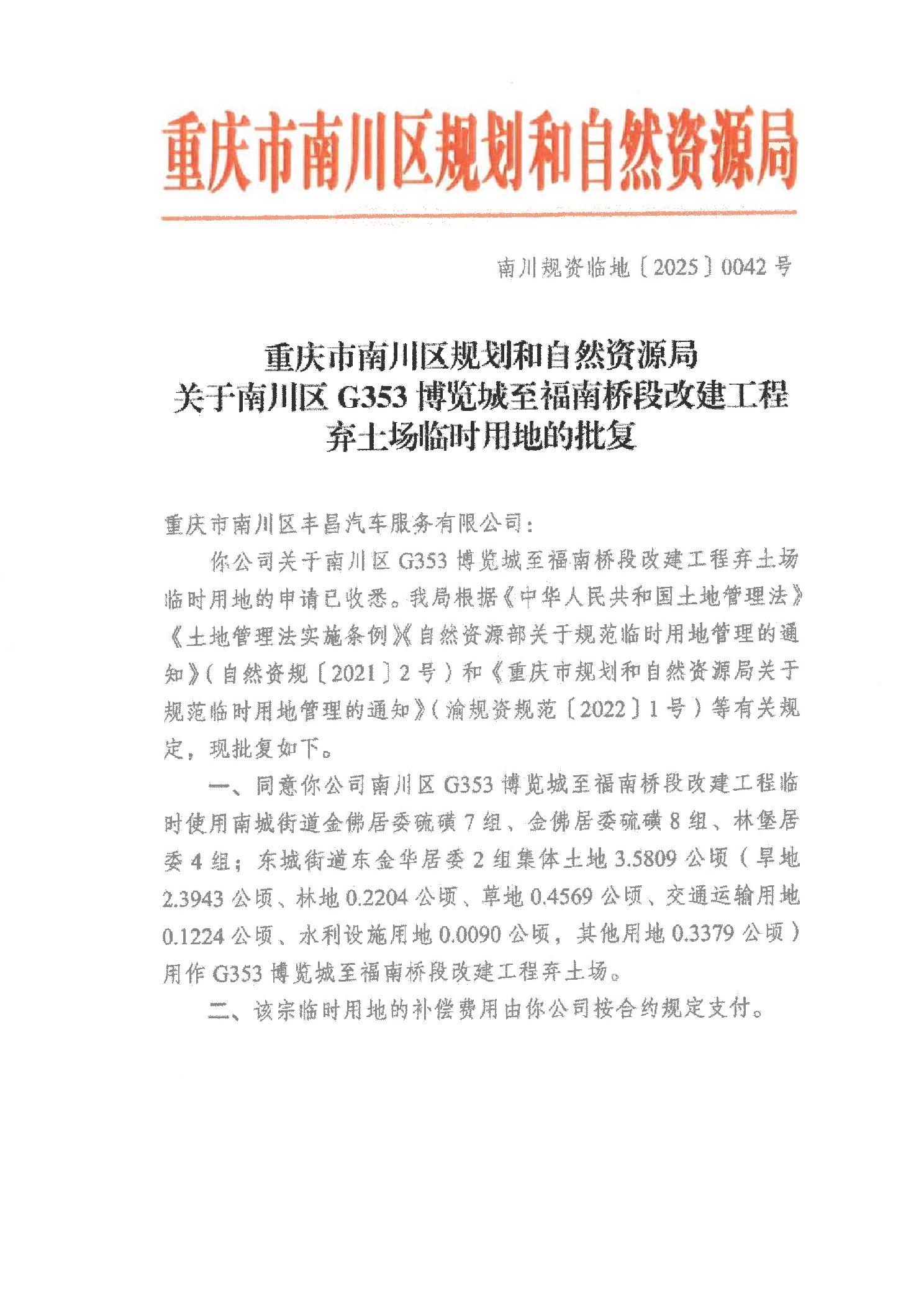 重庆市南川区规划和自然资源局关于南川区G353博览城至福南桥段改建工程弃土场临时用地的批复