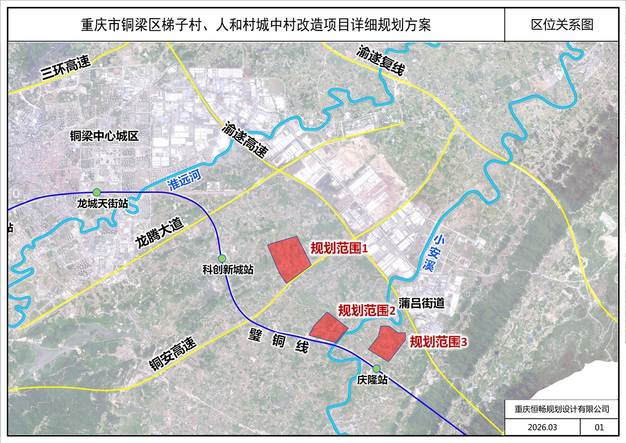 为进一步推进政务公开和依法行政,提高规划的公众参与和监督水平,根据《中华人民共和国城乡规划法》《重庆市城乡规划条例》《重庆市规划和自然资源局规划管理公示办法》,现将重庆市铜梁区梯子村、人和村城中村改造项目详细规划的相关情况公示如下: