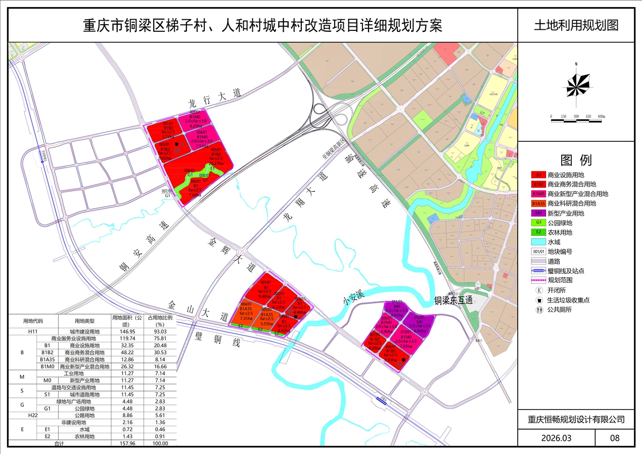 关于重庆市铜梁区梯子村、人和村城中村改造项目详细规划的公示